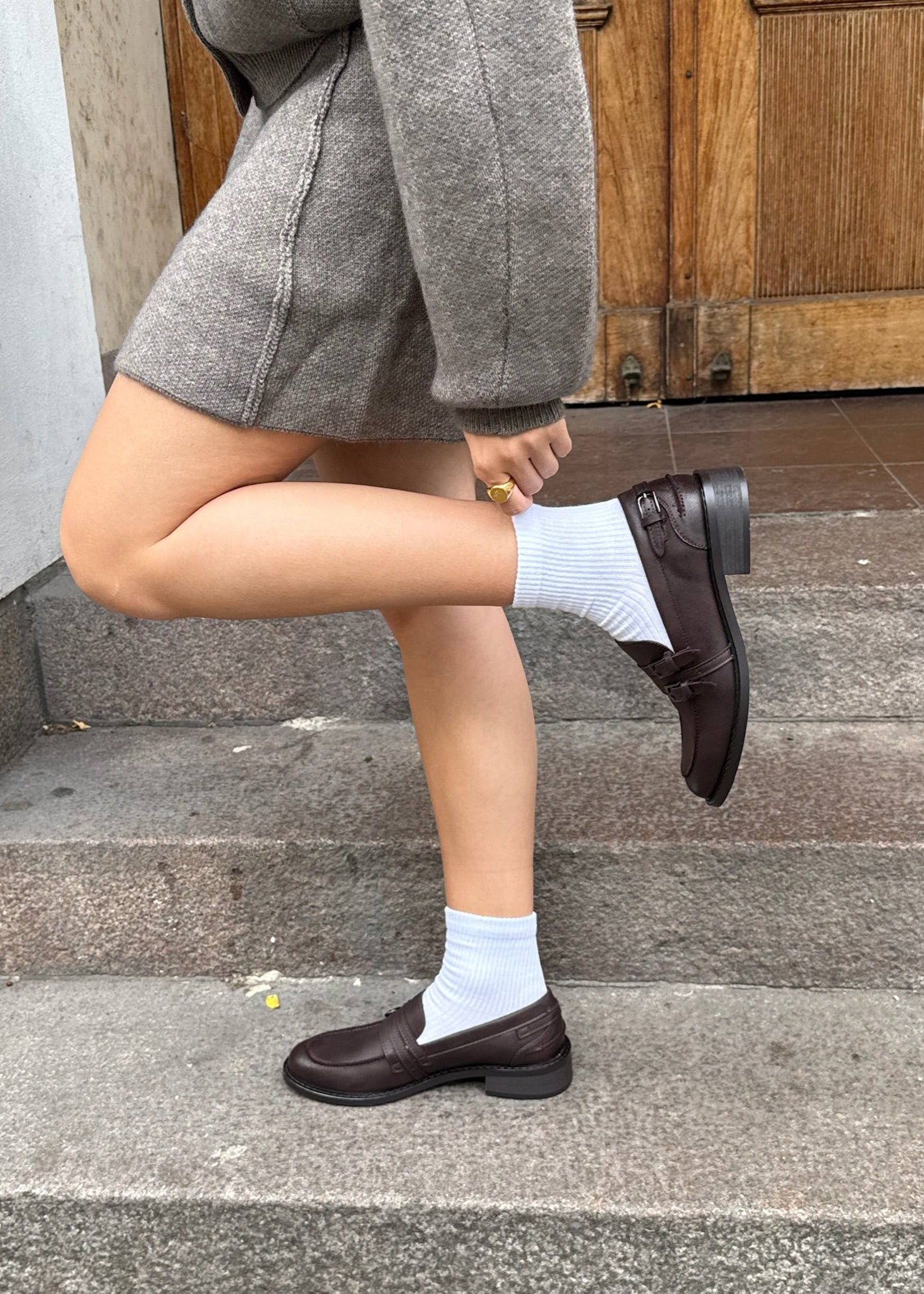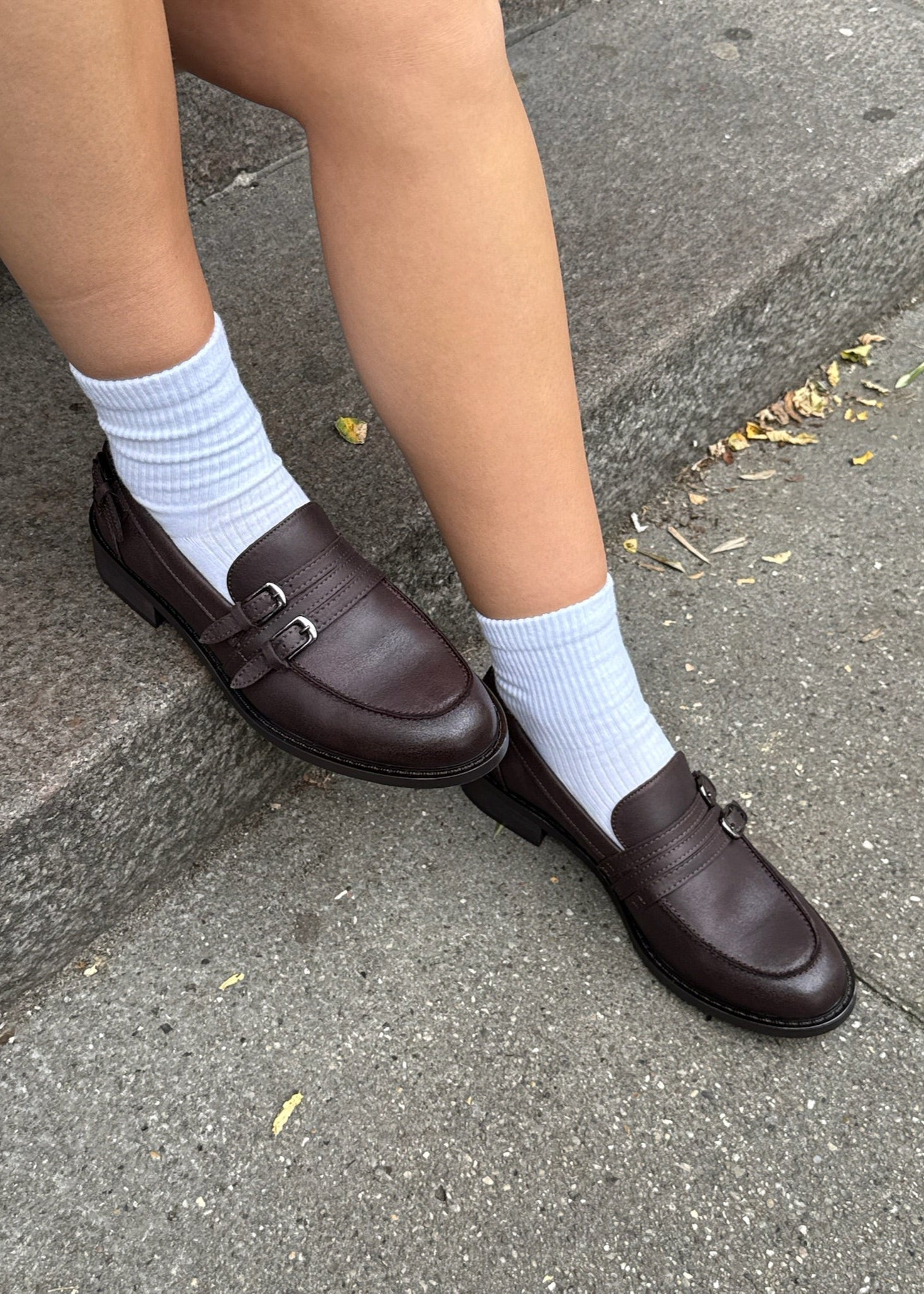 Vores nye Buckle Loafers genfortolker en klassiker med dobbelt spænde foran og dekorativ strop bagpå. Deres rene linjer kombinerer elegance og modernitet, mens den komfortable pasform gør dem perfekte til hverdagsbrug✨