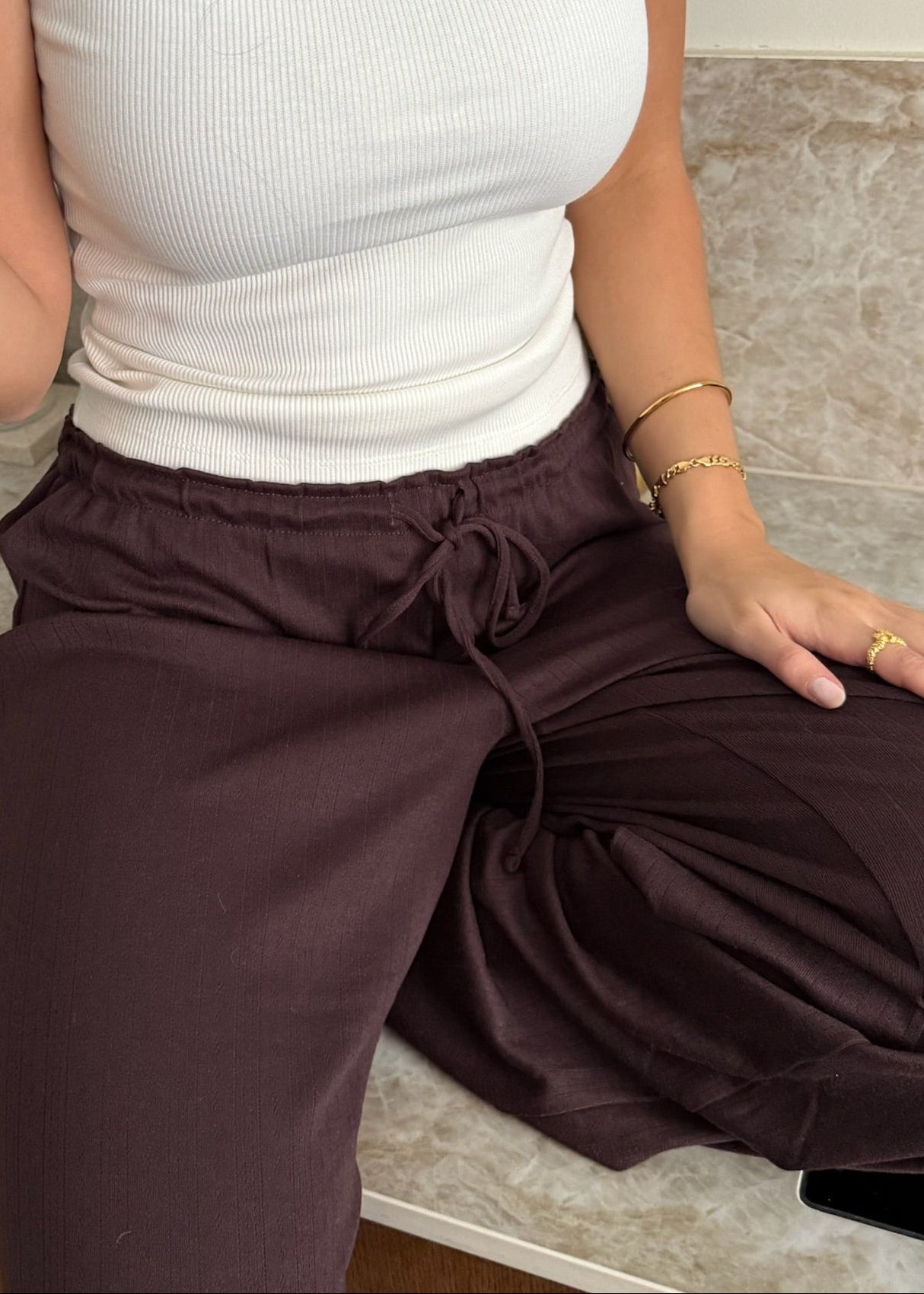 Loungewear Bukserne i Pointelle er et par løse low waist loungebukser i et blødt og åndbart pointelle boulds-materiale, der giver en let og feminin struktur. Pasformen er afslappet med et flatterende lavtaljet snit, der falder elegant langs kroppen. I taljen findes et justerbart bånd, så du nemt kan tilpasse pasformen efter behov. Perfekte til både afslappede dage hjemme og effortless hverdagslooks.