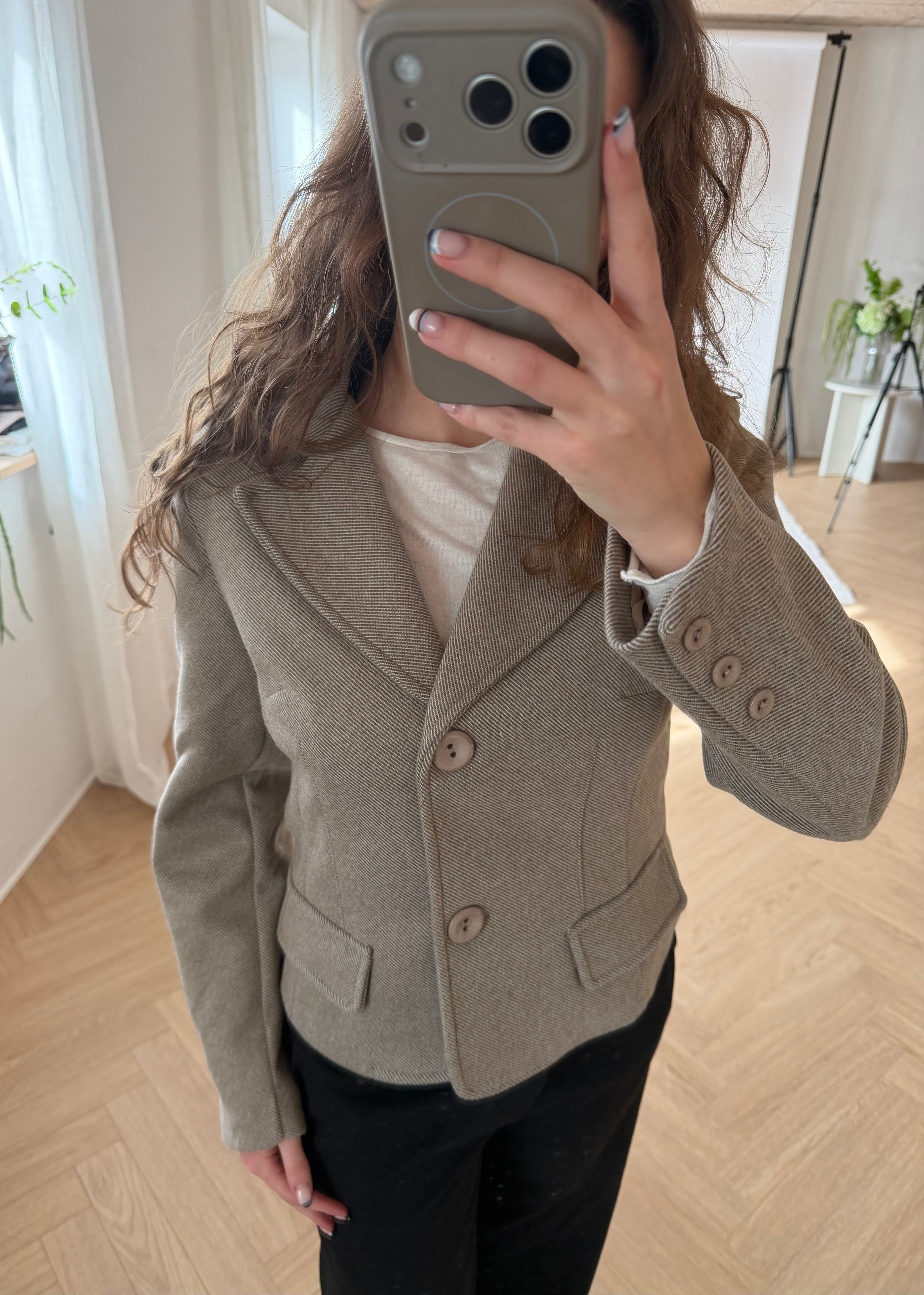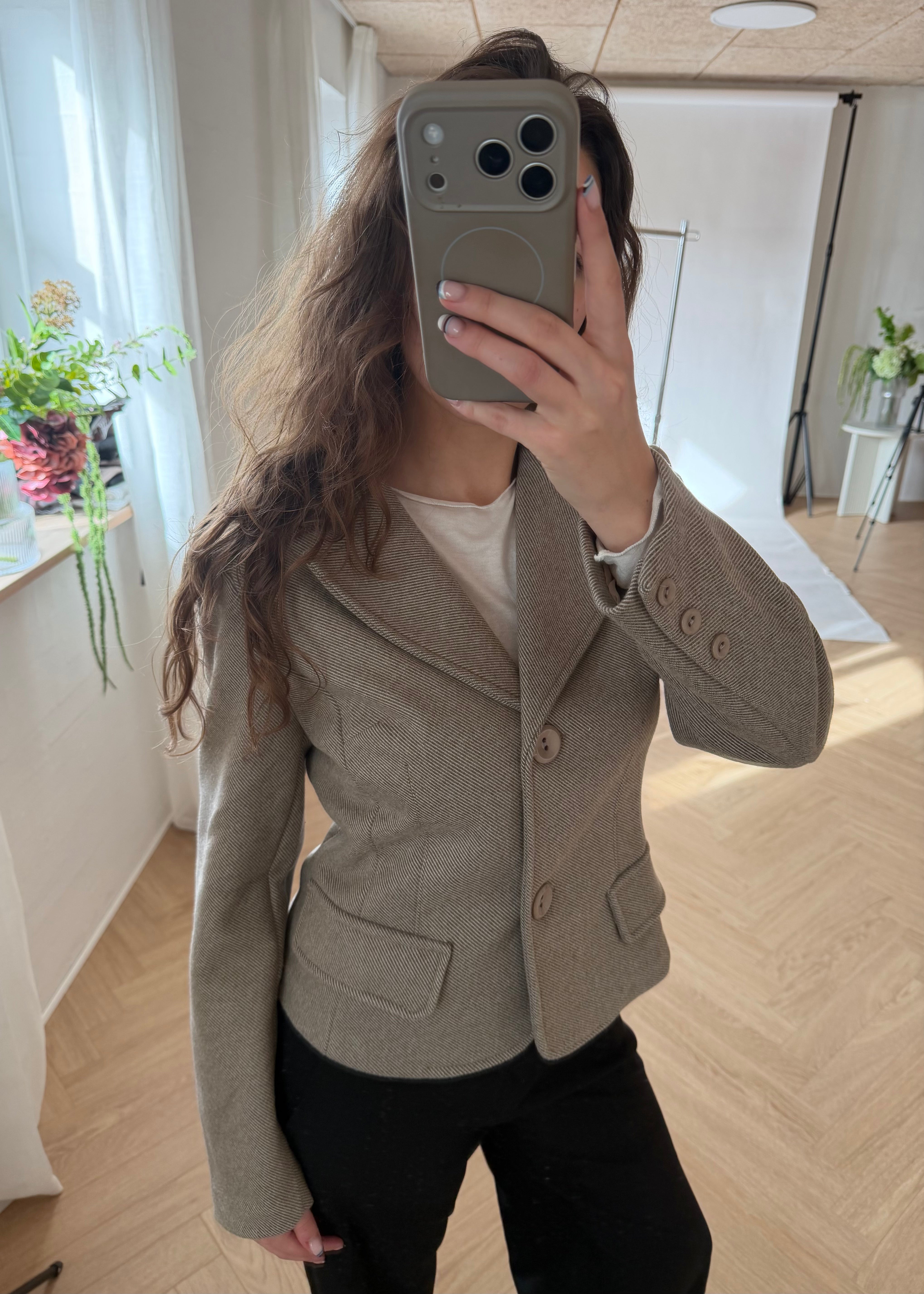 En klassisk figursyet blazer med et moderne ternet udtryk. Blazeren har en elegant silhuet, der skaber et skarpt og stilrent look. Perfekt til både hverdag og arbejde, hvor den tilfører outfittet et tidløst og sofistikeret touch.