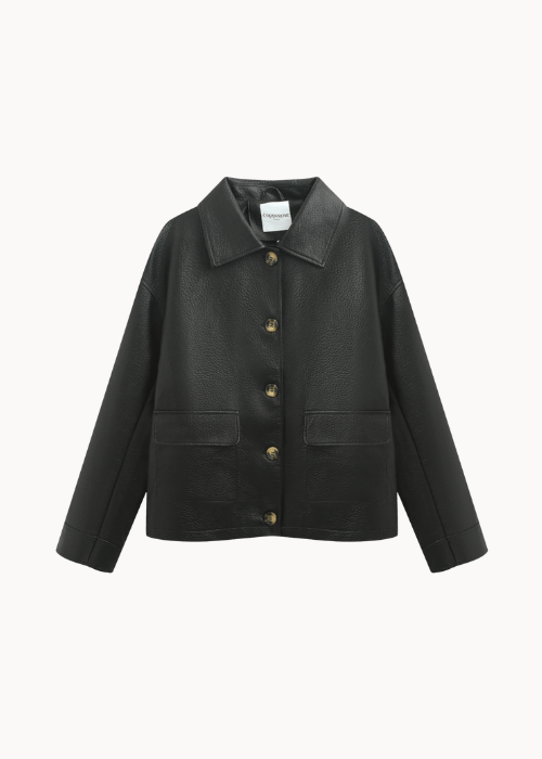 Alba Button Læderjakke - Sort - ByStenholt.dk