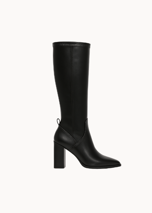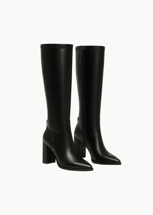 Vores nye Celine High Heel Støvler er knæhøje støvler i imiteret læder med spids snude og høj blokhæl. De giver et sofistikeret og feminint udtryk, som både kan styles til festlige lejligheder eller til et stilrent hverdagslook. Komfortable at gå i, samtidig med at de løfter dit outfit til et nyt niveau🖤