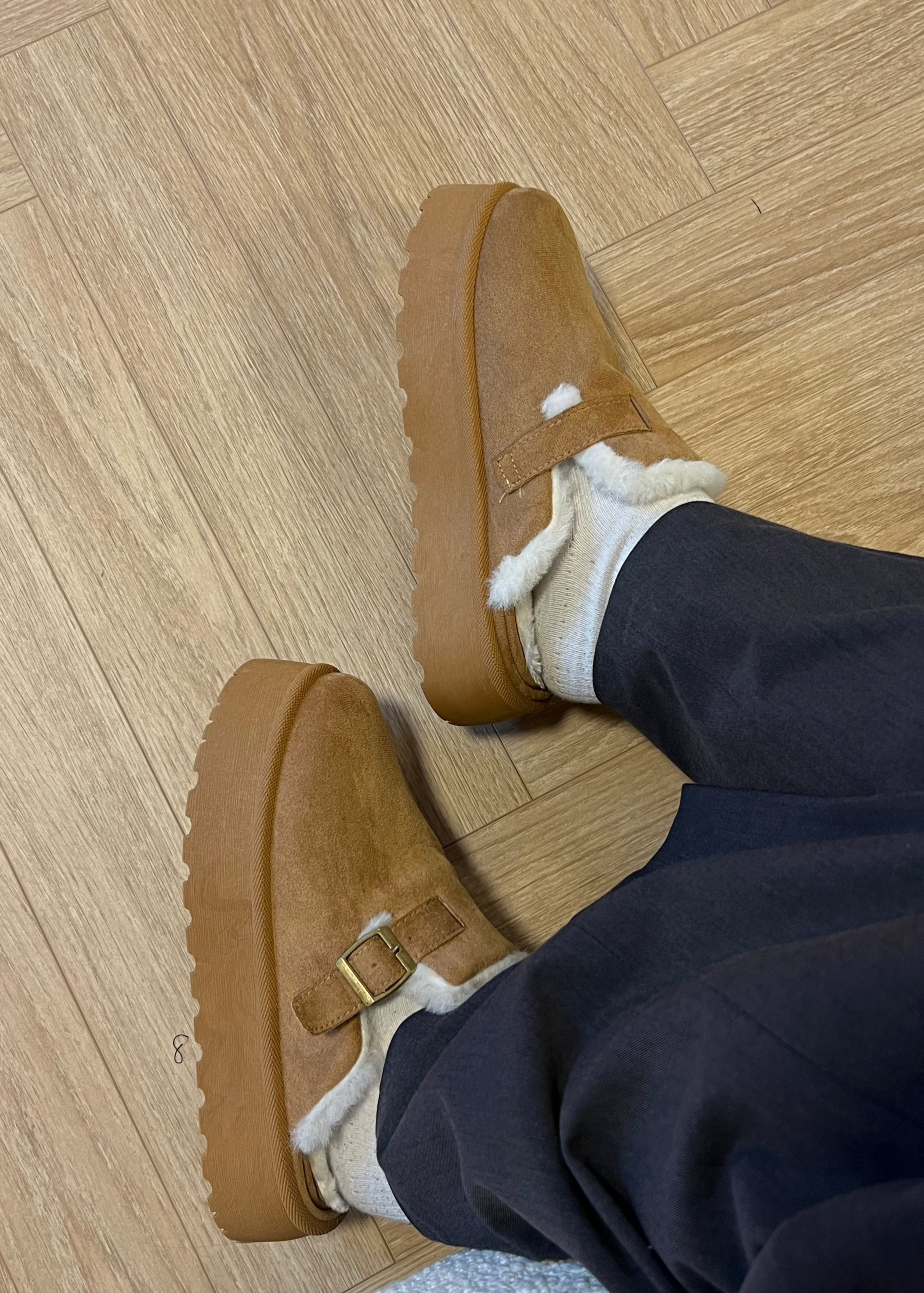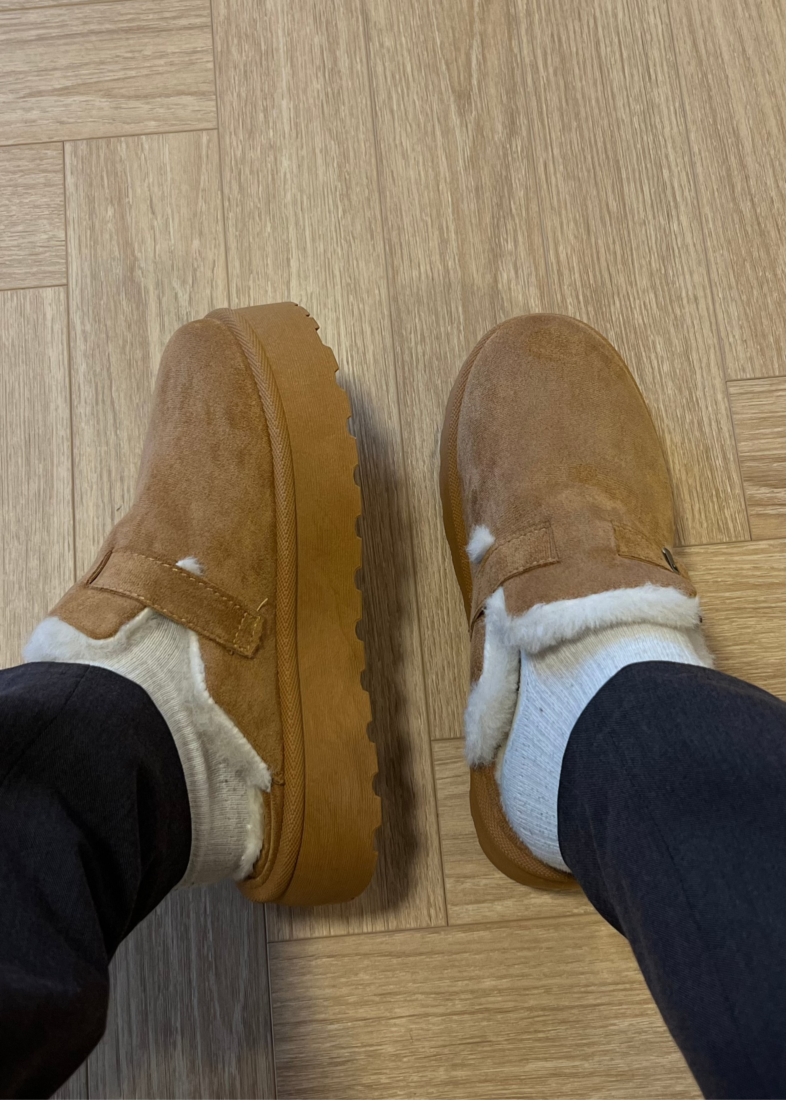 Hjemmesko med Pels Plateau - Camel - ByStenholt.dk