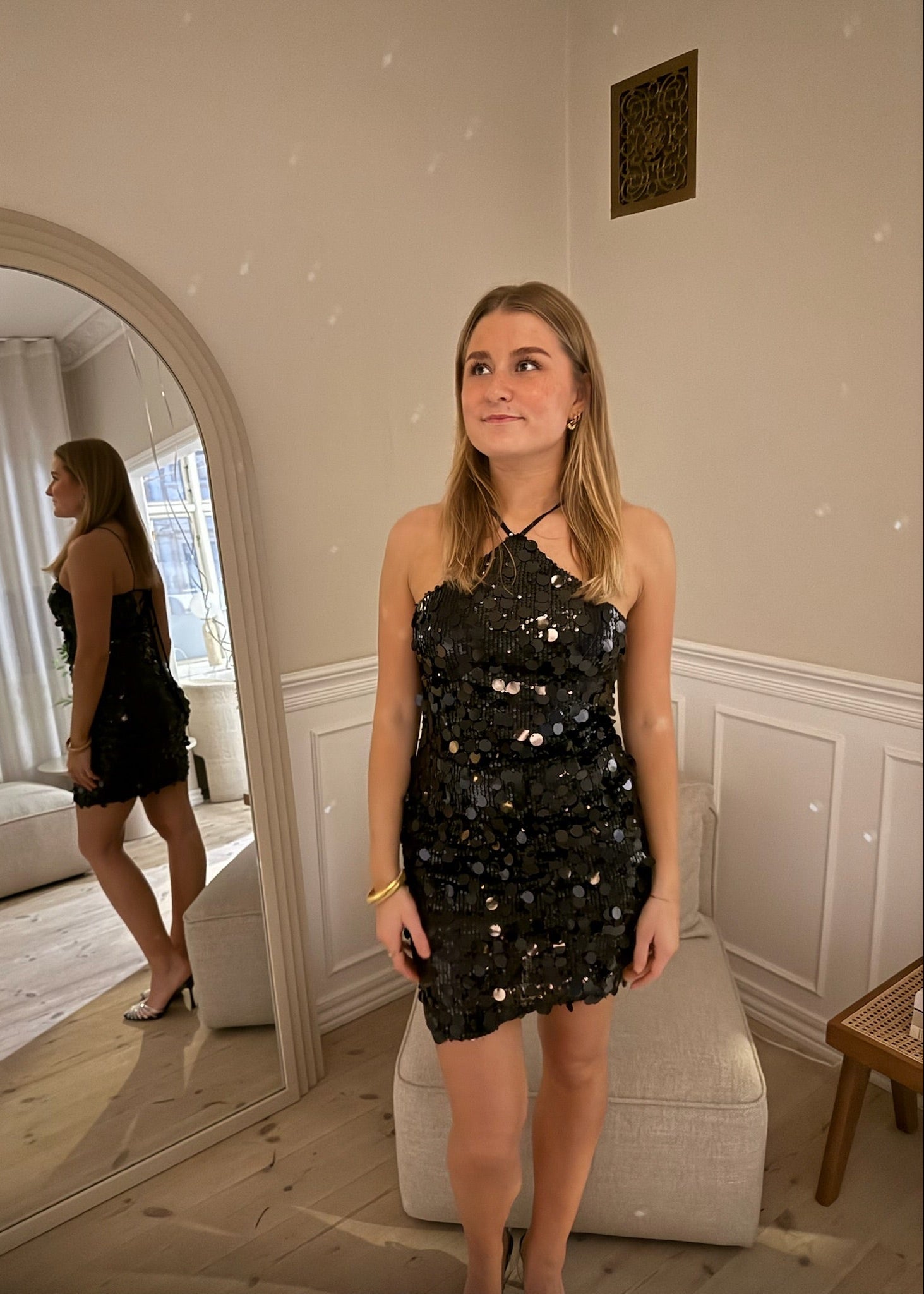 Tvättråd: Vi rekommenderar att du tvättar kjolen för hand för att undvika skador på paljetterna.