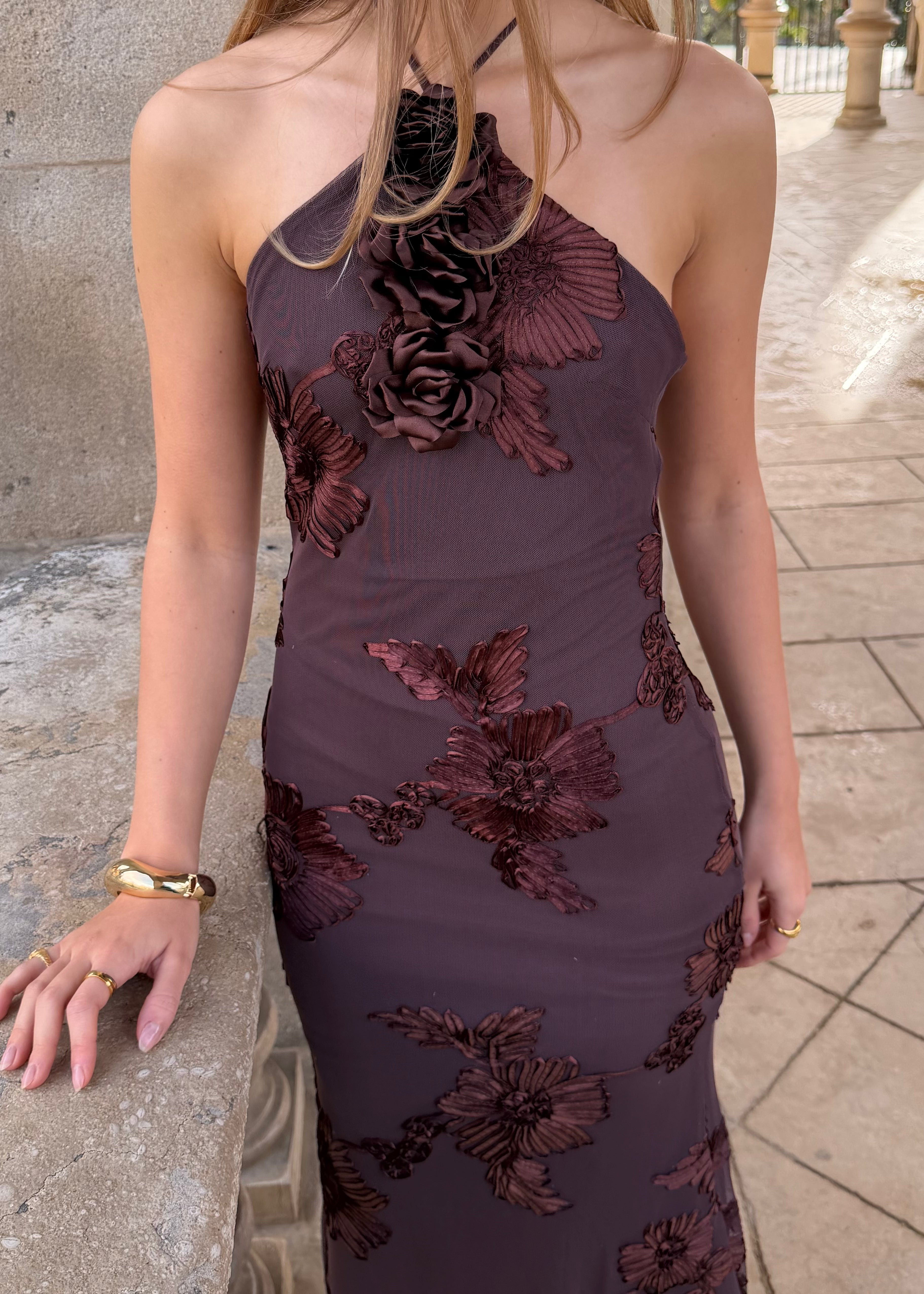 Sarah Mesh Maxi Kjole - Mørkebrun - ByStenholt.dk