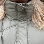 Vår Cassie Puffer Jacket finns i den populära höstfärgen; kaki. Det är en klassisk pufferjacka som är mjuk och varm. J Jackan har dragkedja, knappar, fickor på sidorna och smala resårband i händerna och nederkanten av jackan💘