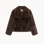 Vores Faux Fur Kort Jakke er den perfekte kombination af luksus og komfort. Den er fremstillet i blødt, pelslignende materiale, der føles eksklusivt og holder dig varm på kølige dage. Den korte pasform og brede krave giver et stilrent og moderne udtryk, som passer perfekt til både hverdags- og festoutfits. Brug den over en kjole for et glamourøst look eller sammen med jeans for en mere afslappet elegance✨