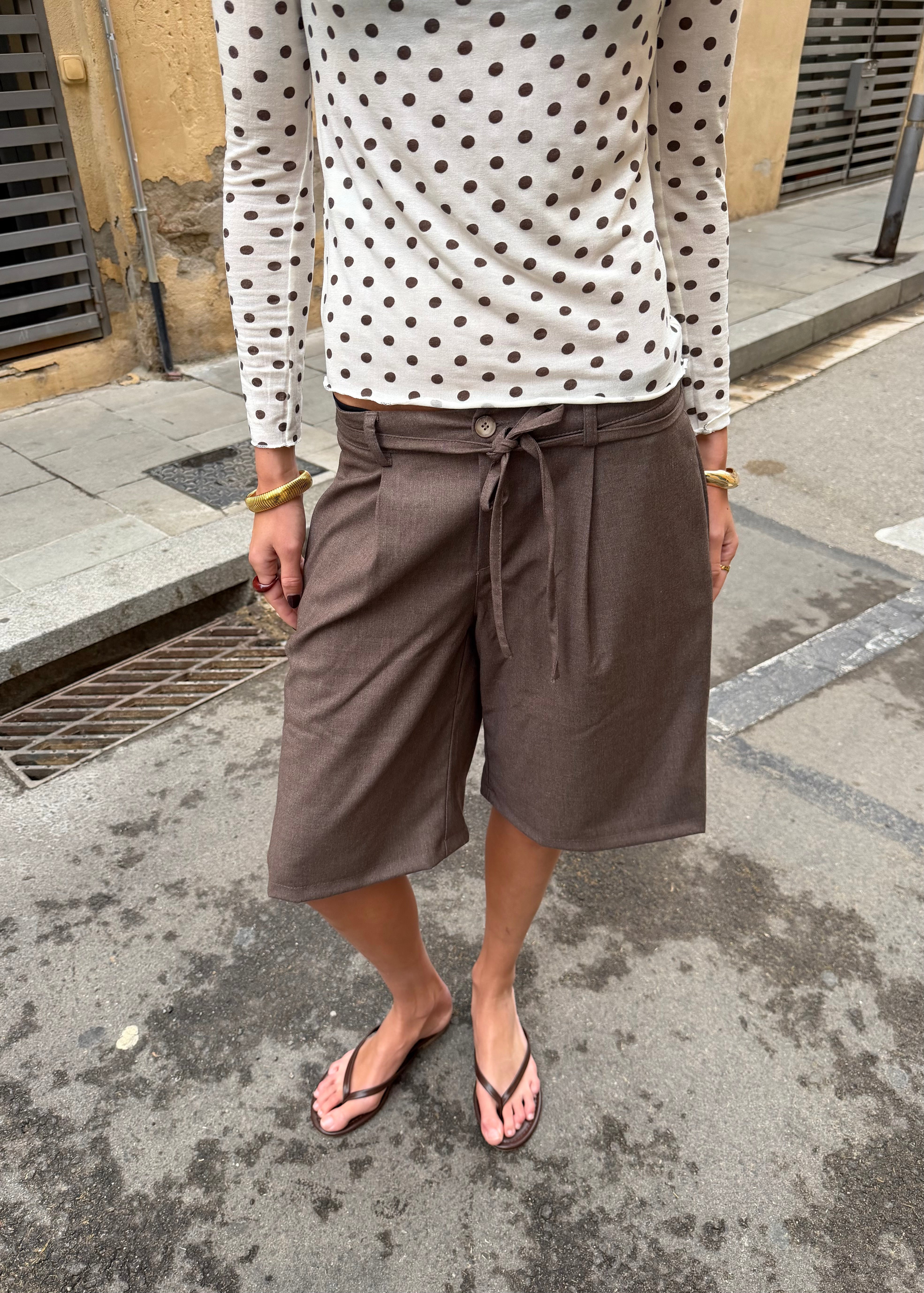 Vores Vide Bermuda Shorts er et must-have til enhver sommergarderobe. De er lavet i et lækkert materiale og har skrålommer foran, bæltestropper samt et aftageligt bindebånd, der giver et afslappet og stilrent udtryk. Shortsene har en flatterende bermuda-længde og to falske lommer bagpå, som fuldender det klassiske habit-inspirerede look 🌟