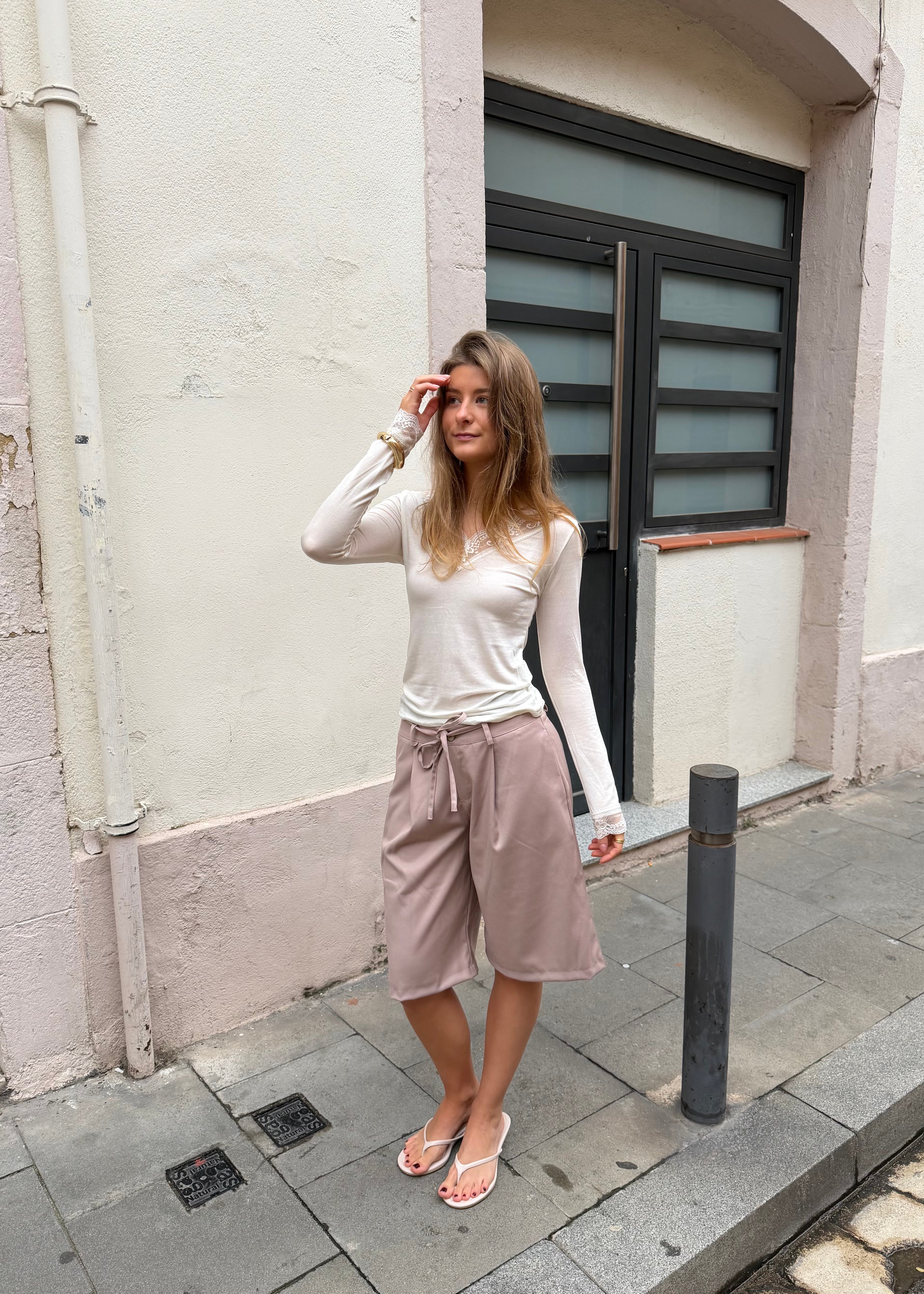 Vores Vide Bermuda Shorts er et must-have til enhver sommergarderobe. De er lavet i et lækkert materiale og har skrålommer foran, bæltestropper samt et aftageligt bindebånd, der giver et afslappet og stilrent udtryk. Shortsene har en flatterende bermuda-længde og to falske lommer bagpå, som fuldender det klassiske habit-inspirerede look 🌟