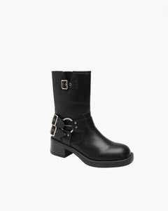 Våra Biker Boots finns med både höga och låga skaft. De höga går till mitten av smalbenet. De har även silverspännen och nitar som ger dem ett rått utseende. De passar perfekt till en kjol🖤☀️