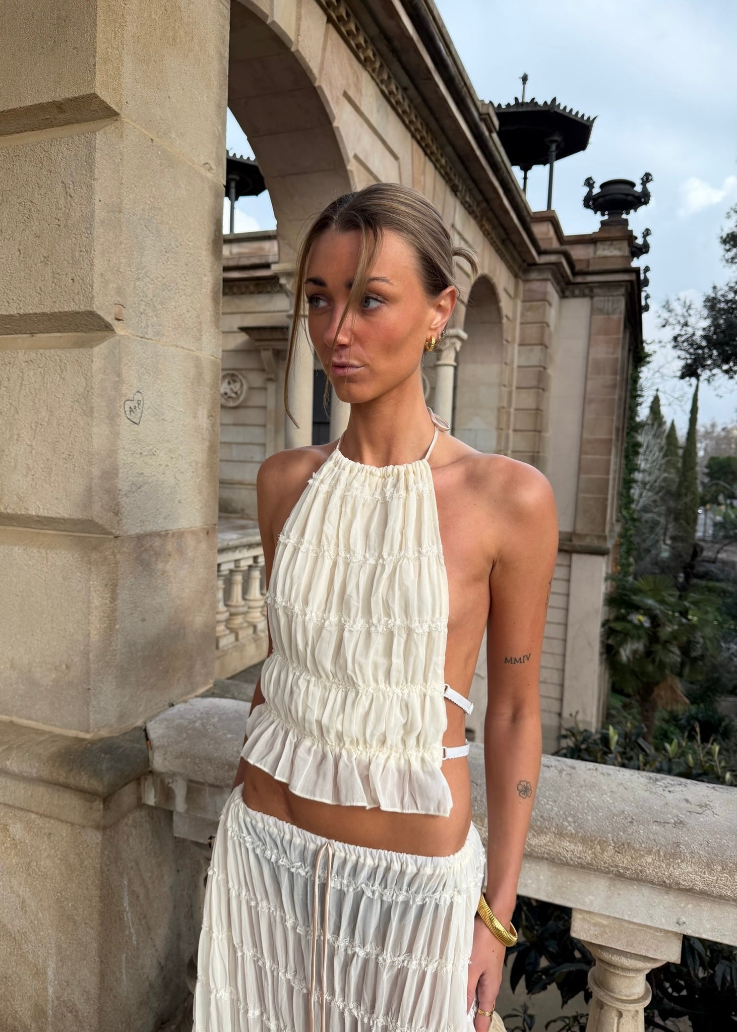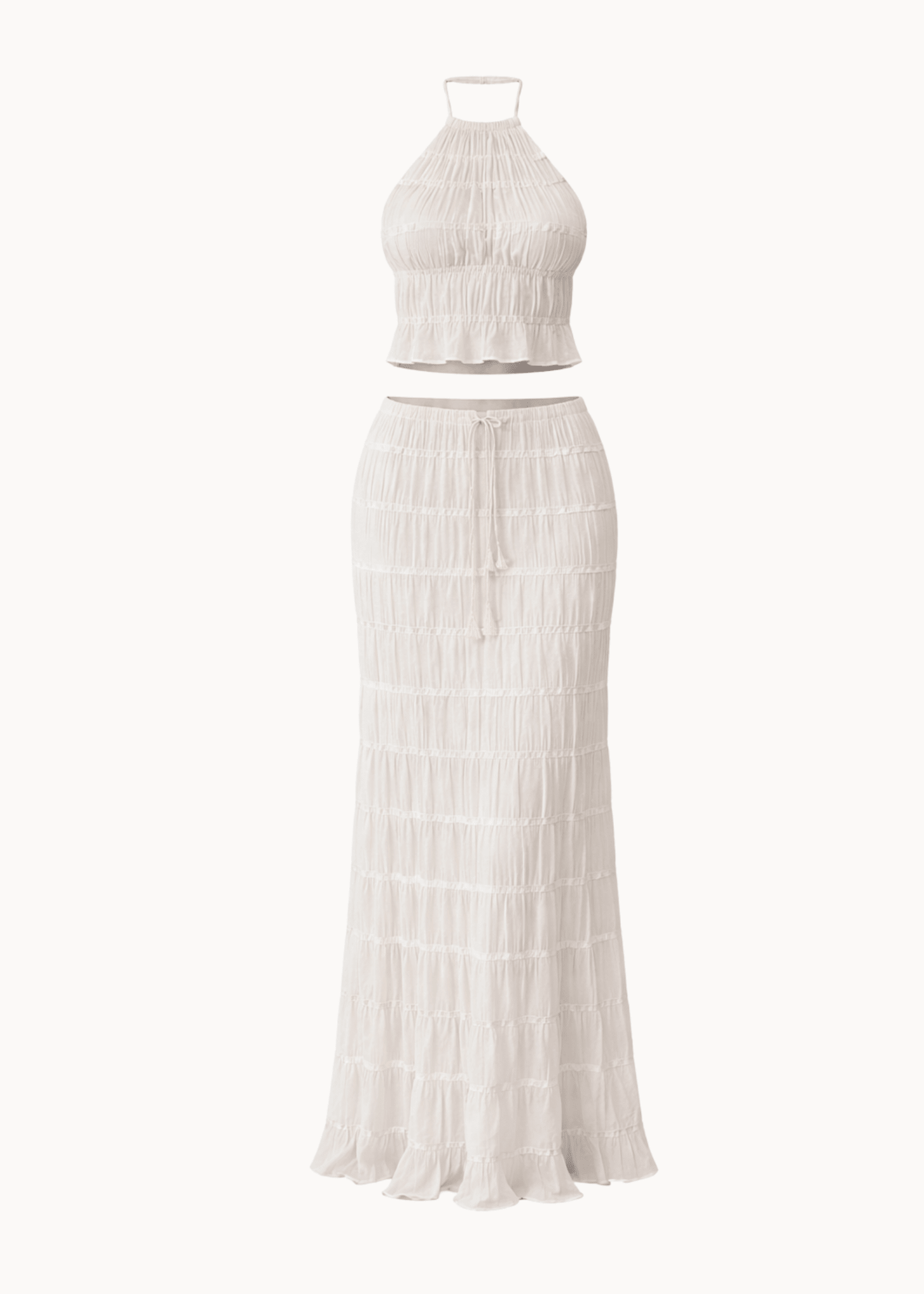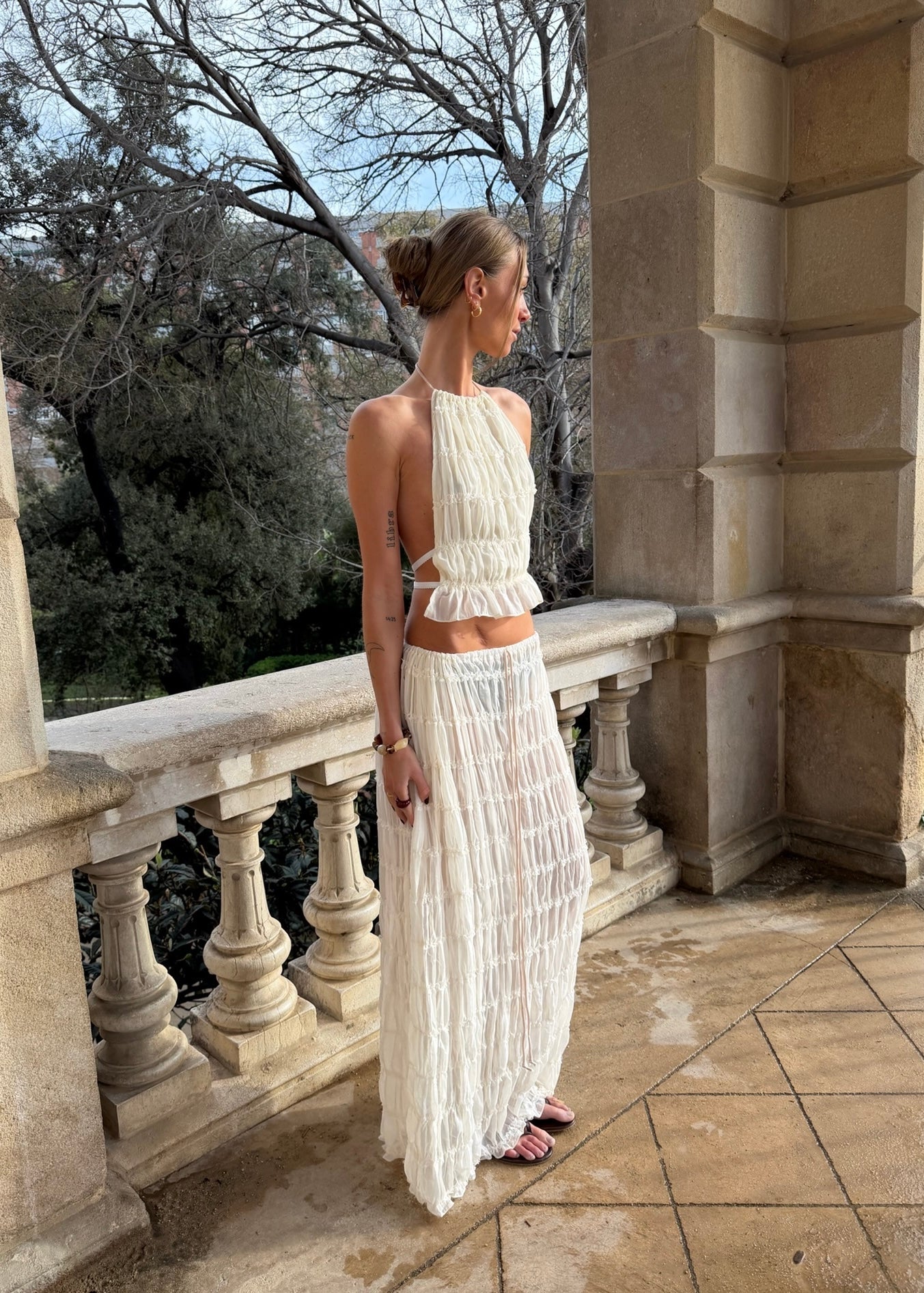 Vores Valeria Mesh Sæt er et let og feminint sæt bestående af en mesh-top og en matchende nederdel. Toppen har bar ryg og bindedetalje, som giver et elegant og luftigt udtryk, mens nederdelen falder flot og let med sin transparente mesh-kvalitet.🤍