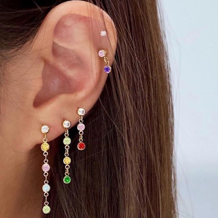 Våra Lua Örhängen är gjorda av 925 Sterling Silver och består även av gnistrande zirconia i färgerna; vit, ljusgrön, gul och grön. De färgglada stenarna ger örhängena en feminin look.
