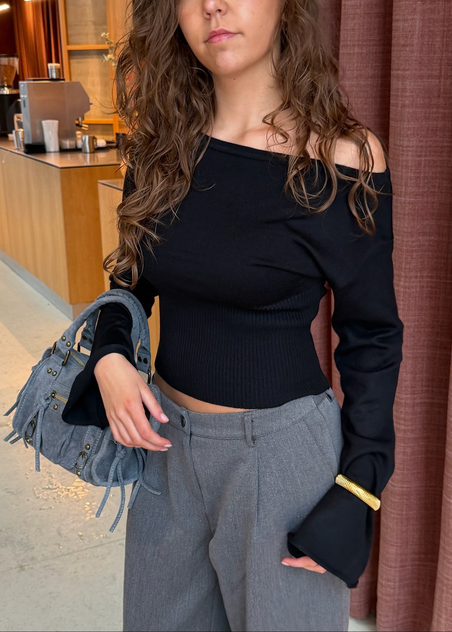 Vores Liva Off-Shoulder Strik er en feminin og stilren striktrøje med et elegant off-shoulder detalje. Den brede halsudskæring falder smukt over skuldrene, mens den ribstrikkede talje skaber en flatterende silhuet. 🤍