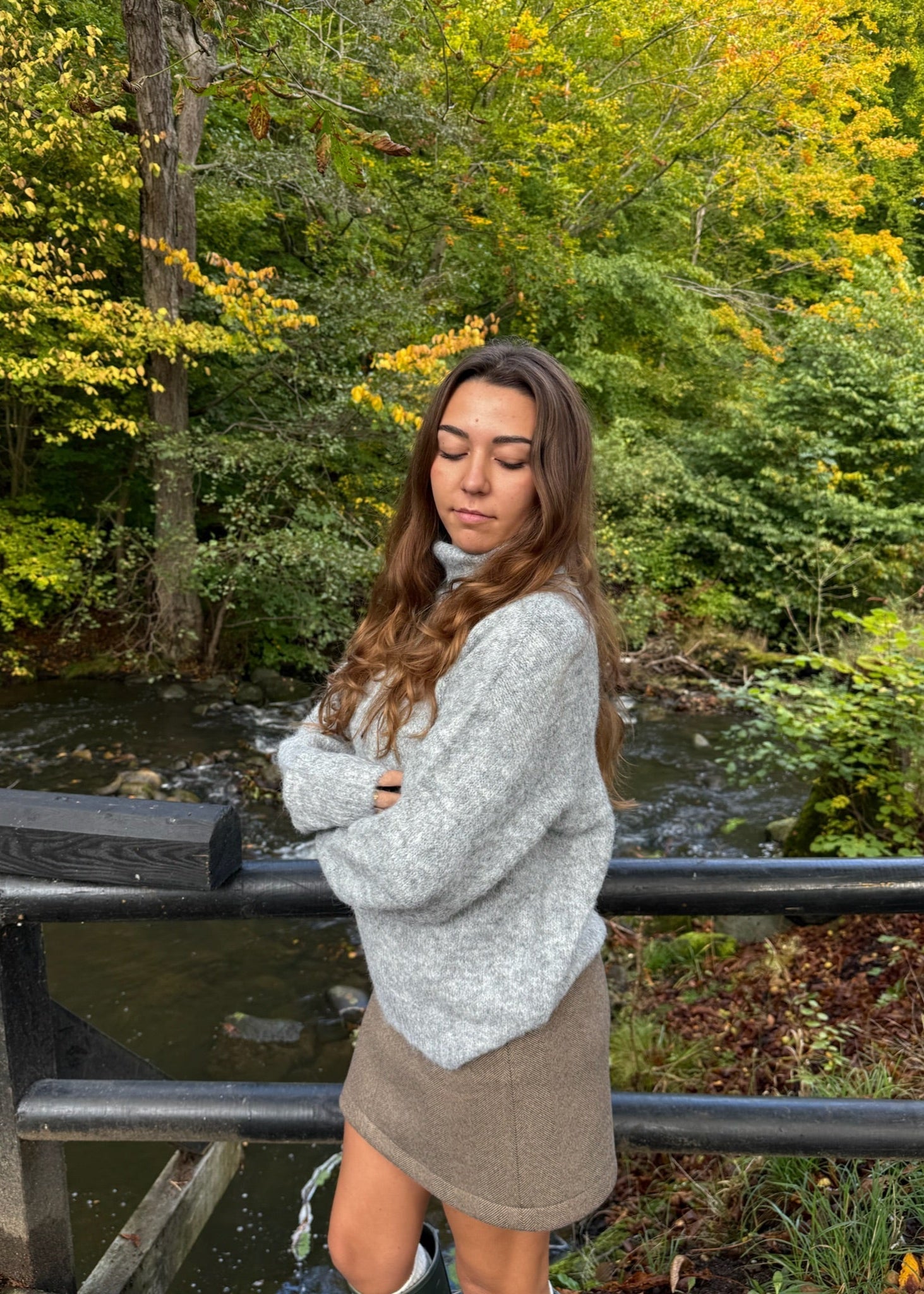 Vores nye Maya Turtleneck Strik er en tidløs strik i et blød materiale. Sweateren har høj krave, rib kanter og en rummelig pasform, der giver et moderne og effortless udtryk. Den er perfekt til de kolde dage, hvor du ønsker at kombinere varme, komfort og stil ❄️✨