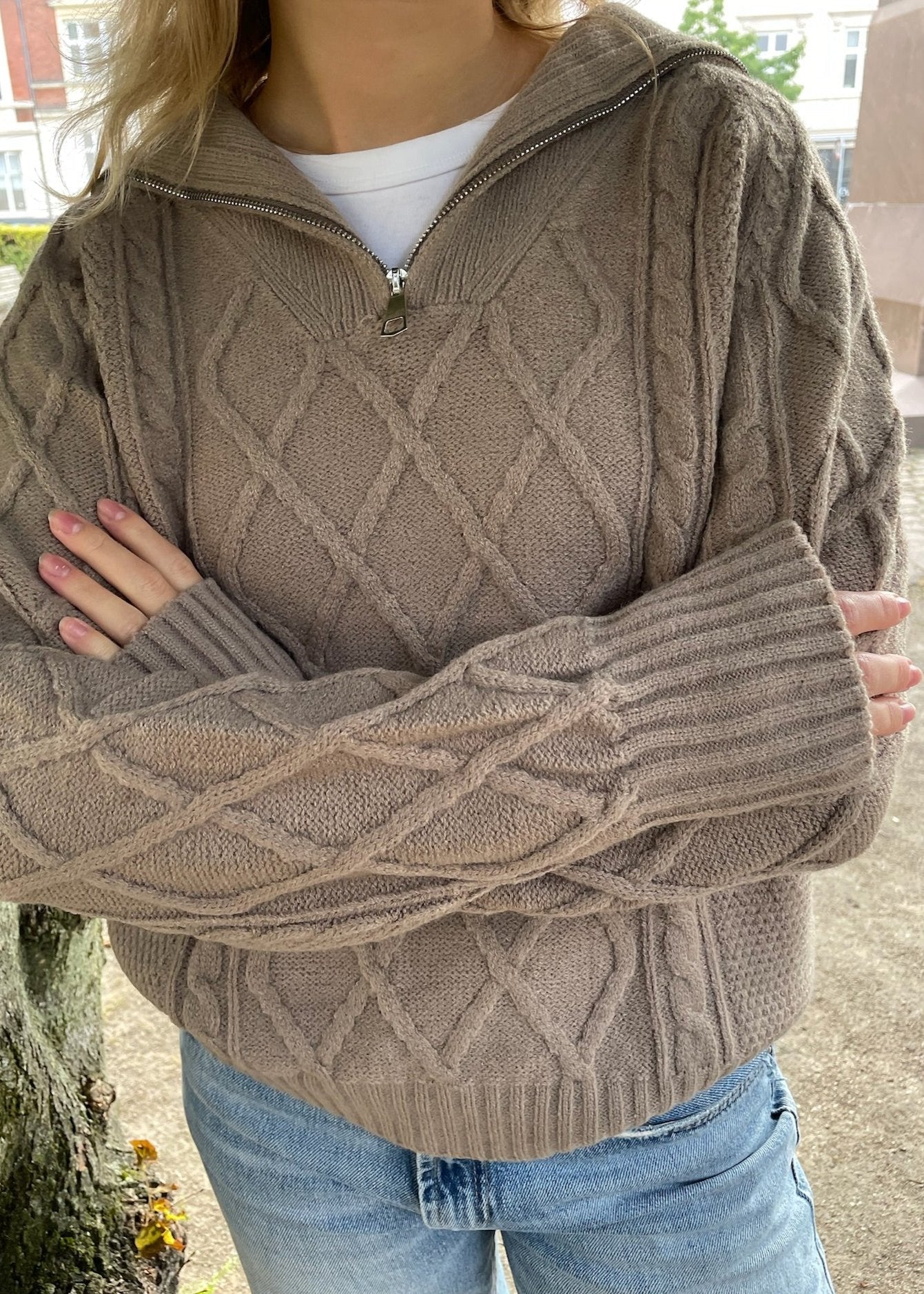 Vår fina Ofelia Half Zip Knit är en stickad tröja med halv dragkedja. Skjortan har en polokrage och ett snyggt flätmönster. Det finns även en ribbad kant vid ärmar och nederkant💘🍂