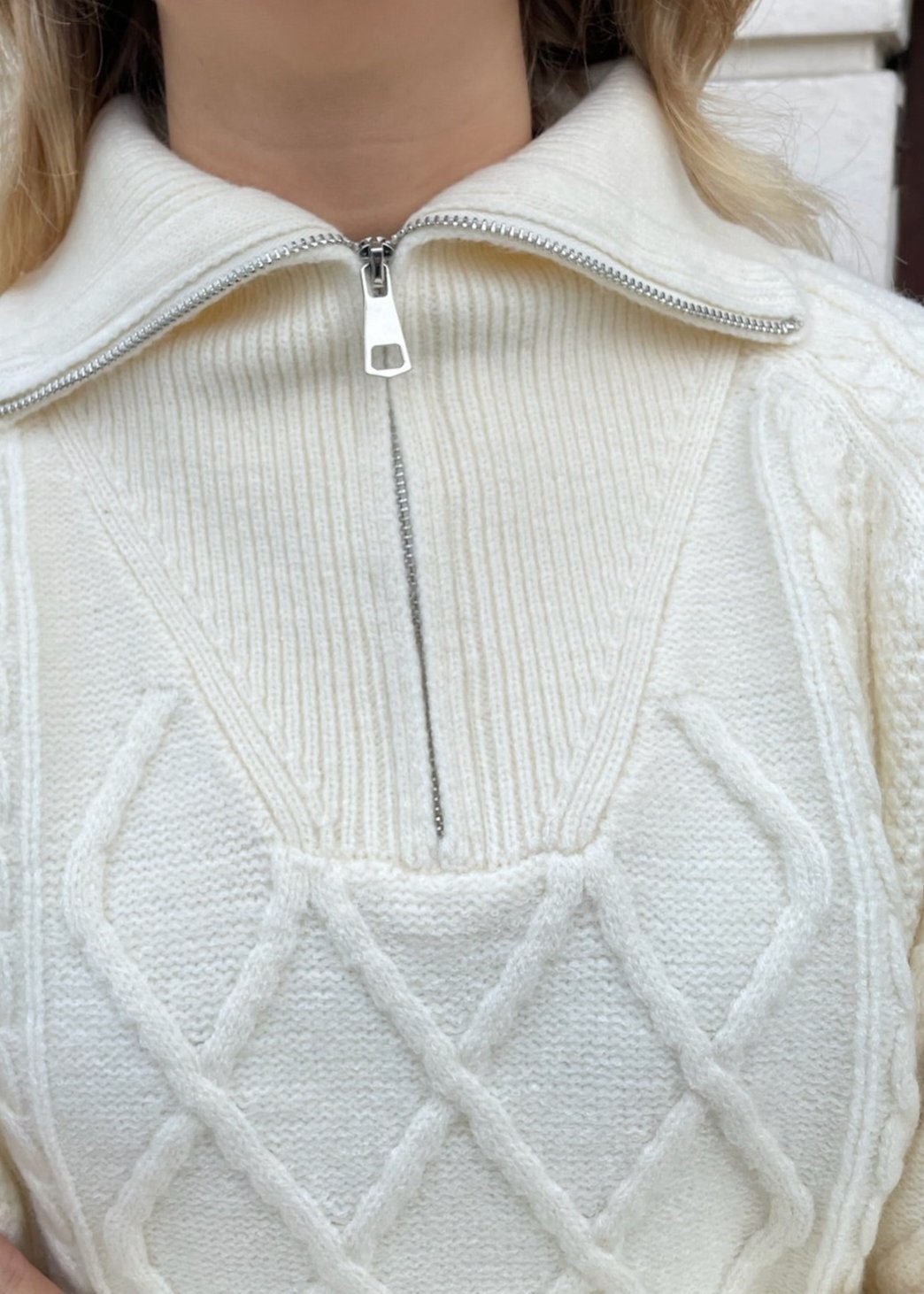 Vår fina Ofelia Half Zip Knit är en stickad tröja med halv dragkedja. Skjortan har en polokrage och ett snyggt flätmönster. Det finns även en ribbad kant vid ärmar och nederkant 💘🍂