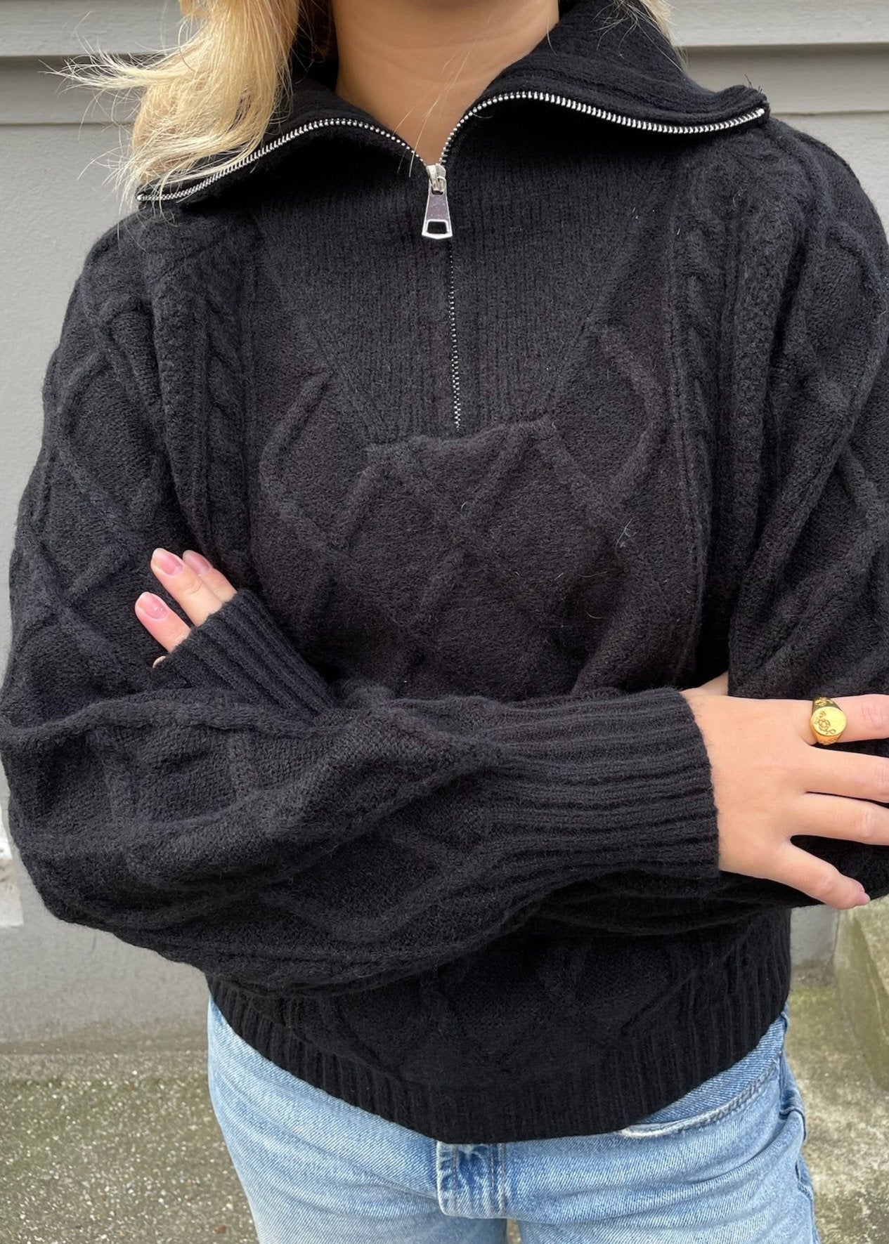 Vår fina Ofelia Half Zip Knit är en stickad tröja med halv dragkedja. Skjortan har en polokrage och ett snyggt flätmönster. Det finns även en ribbad kant vid ärmar och nederkant 💘🍂