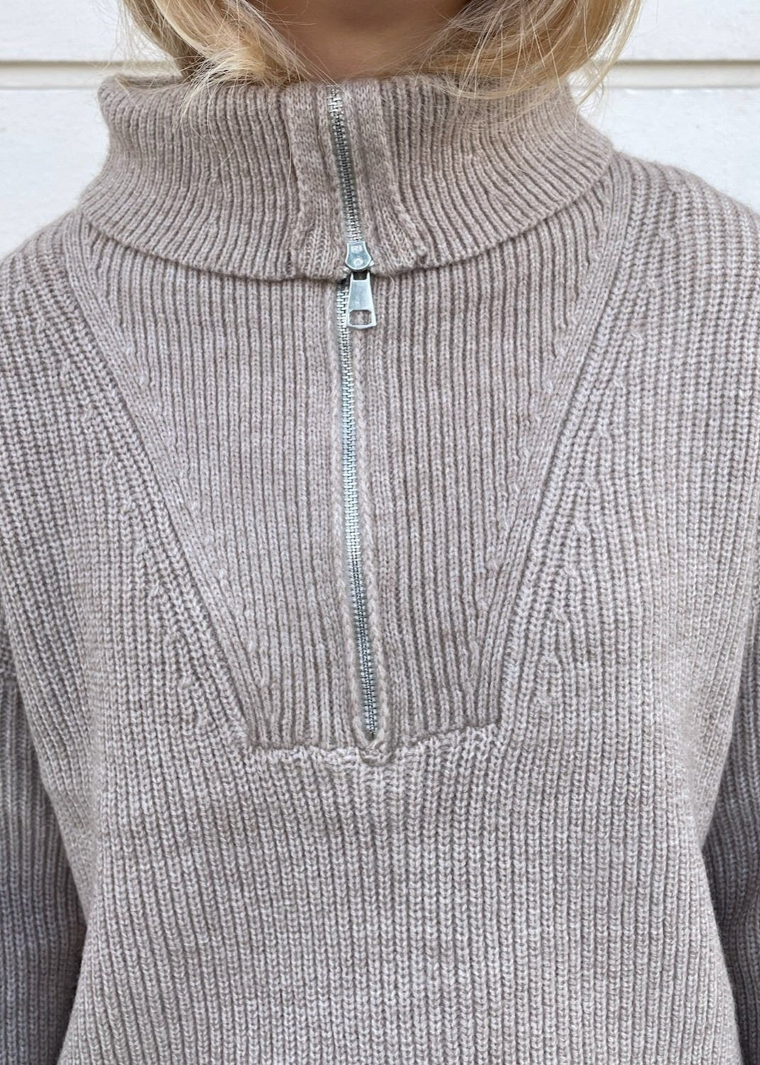 Vår Olivia Half Zip Knit har en polokrage och en dragkedja fram som stannar runt mitten av bröstet. Stickningen är mjuk och har långa uppkavlade ärmar. Denna sticka är snygg och passar till många outfits! 💕