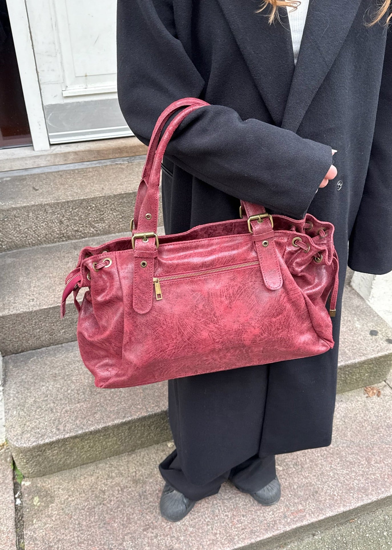 Mira Bag är en vacker och elegant axelväska. Väskan har både långa och korta handtag, så väskan kan bäras på axeln eller i handen/på armen. Dessutom har väskan ett stort fack där det finns plats för bl.a. en dator, böcker etc. En liten matchande väska medföljer 💫