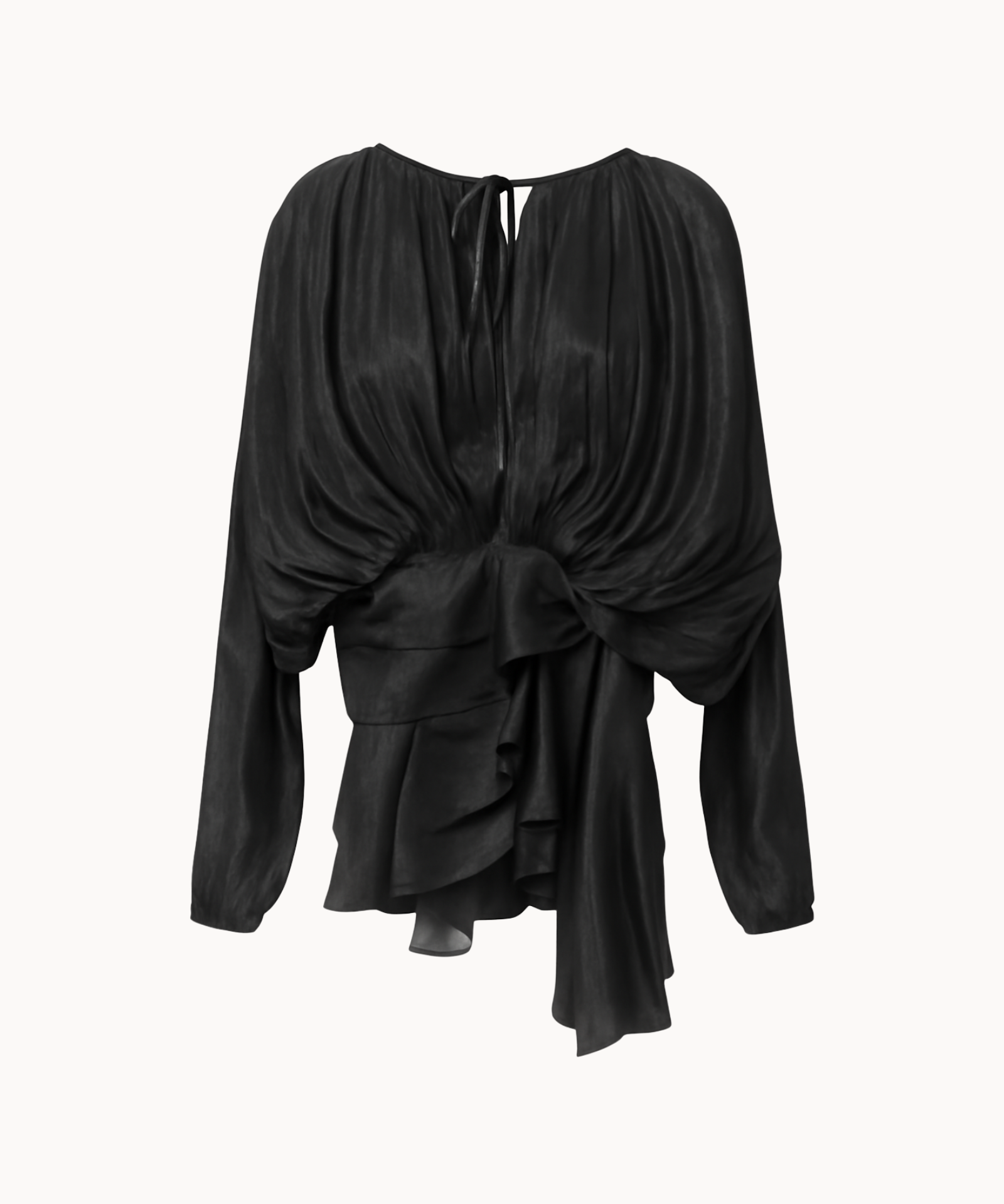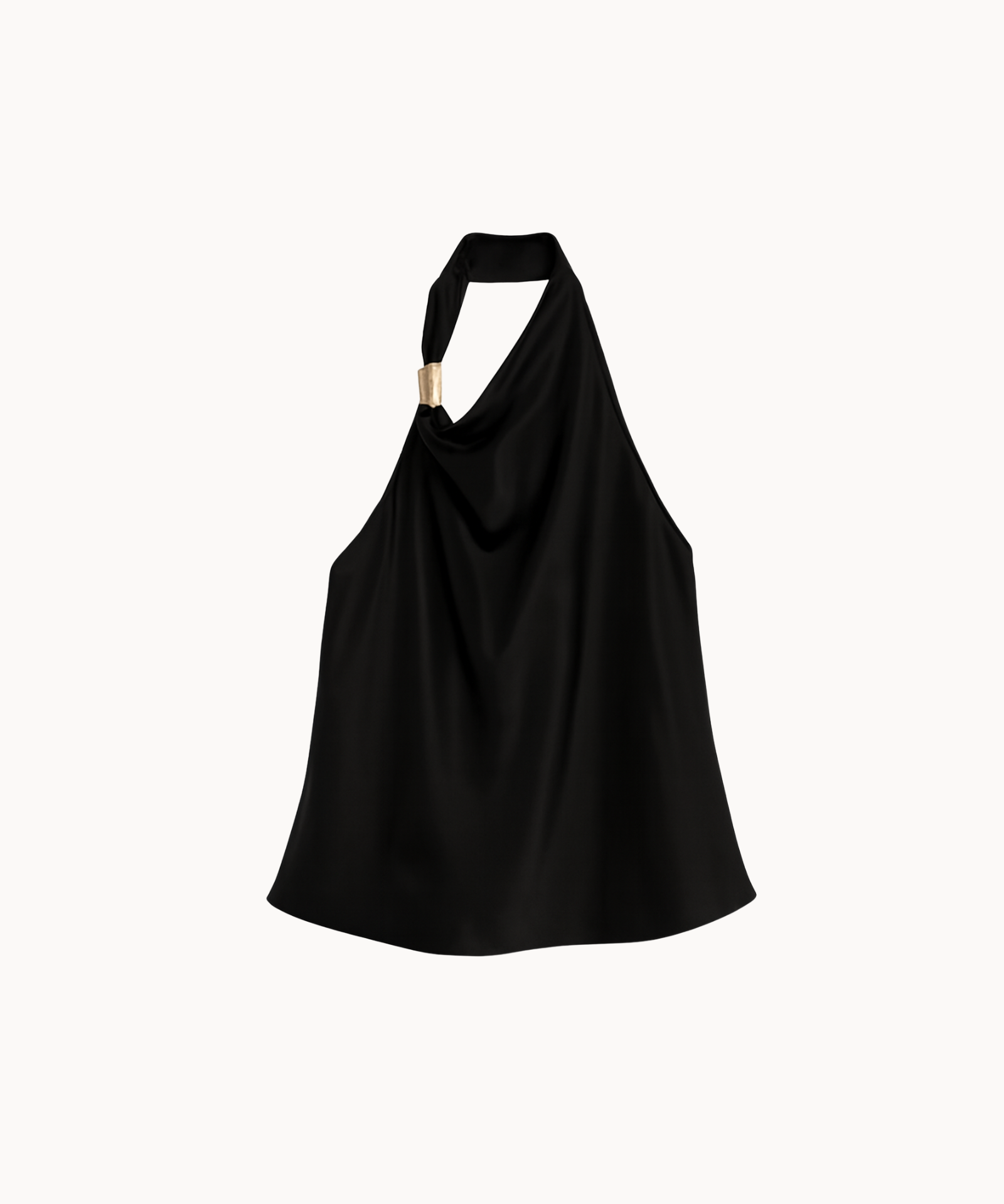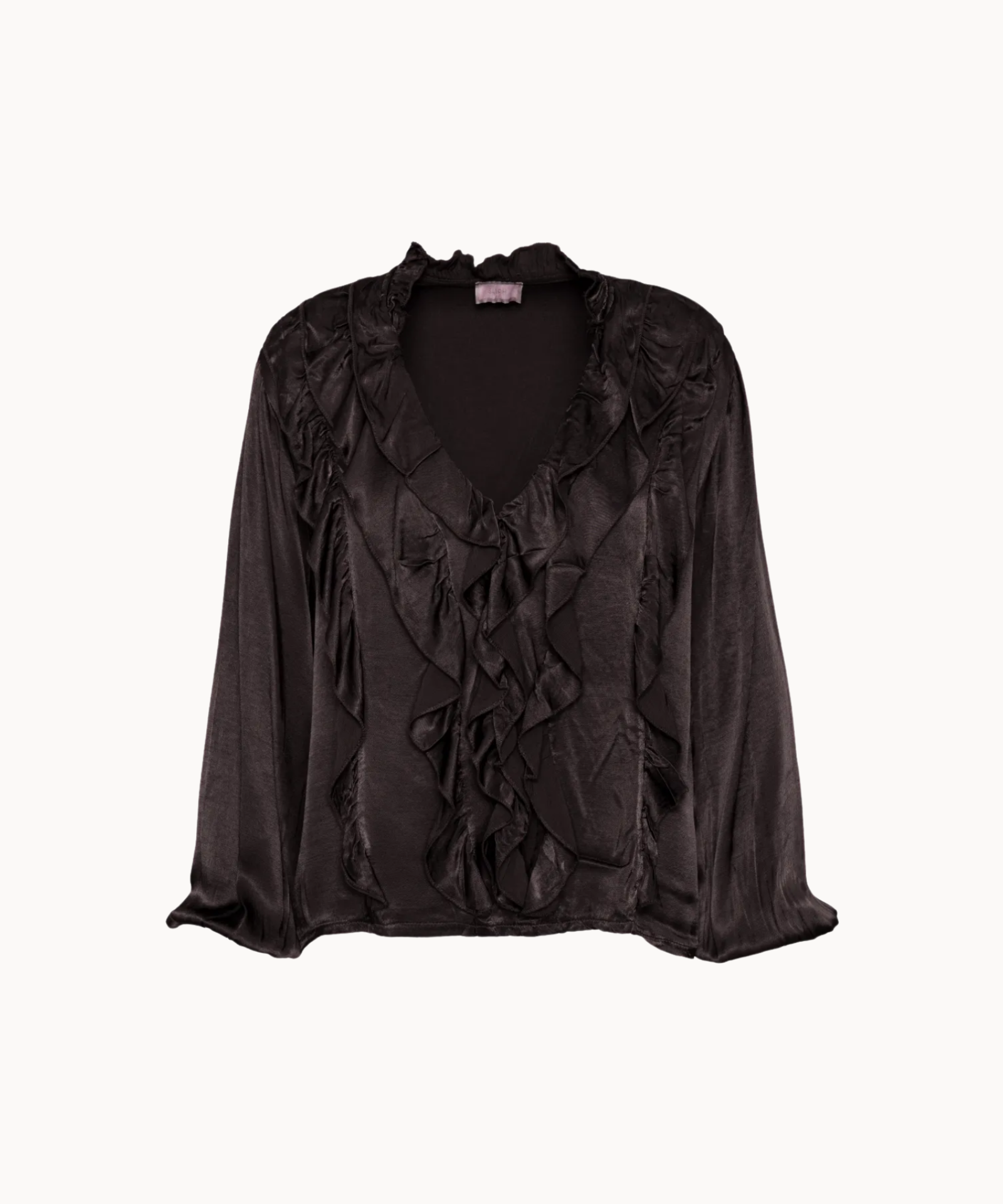 Asymmetrisk Satin Top - Ternet Mørkebrun