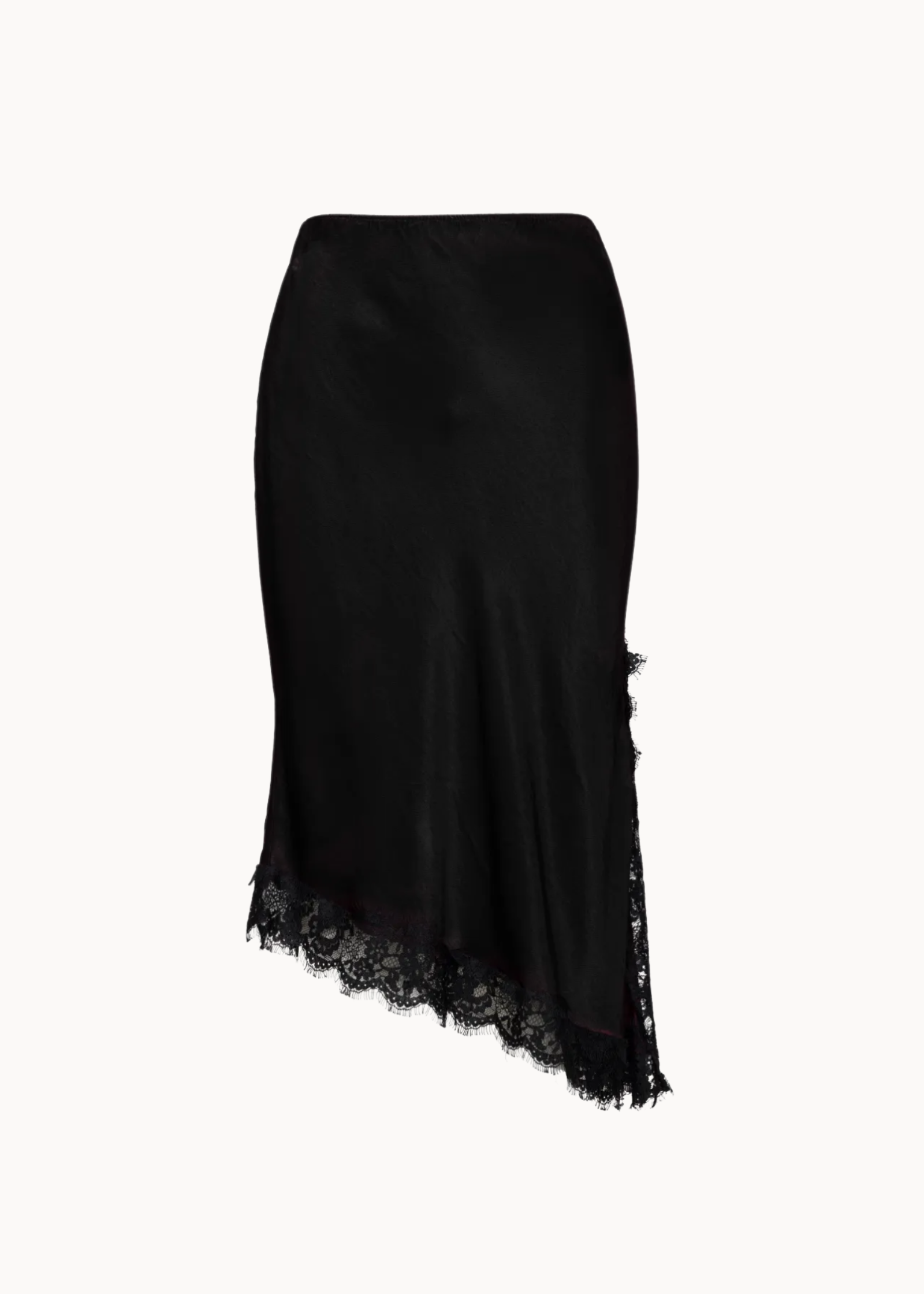 Vores Asymmetrisk Satin Nederdel er indbegrebet af elegance og femininitet. Den er designet i et glansfuldt satin-lignende materiale, der falder smukt og flatterende på kroppen. Nederdelen har en asymmetrisk kant med fine blonde-detaljer, som giver et eksklusivt og sofistikeret udtryk. Perfekt til både festlige anledninger og stilfulde aftener ude✨