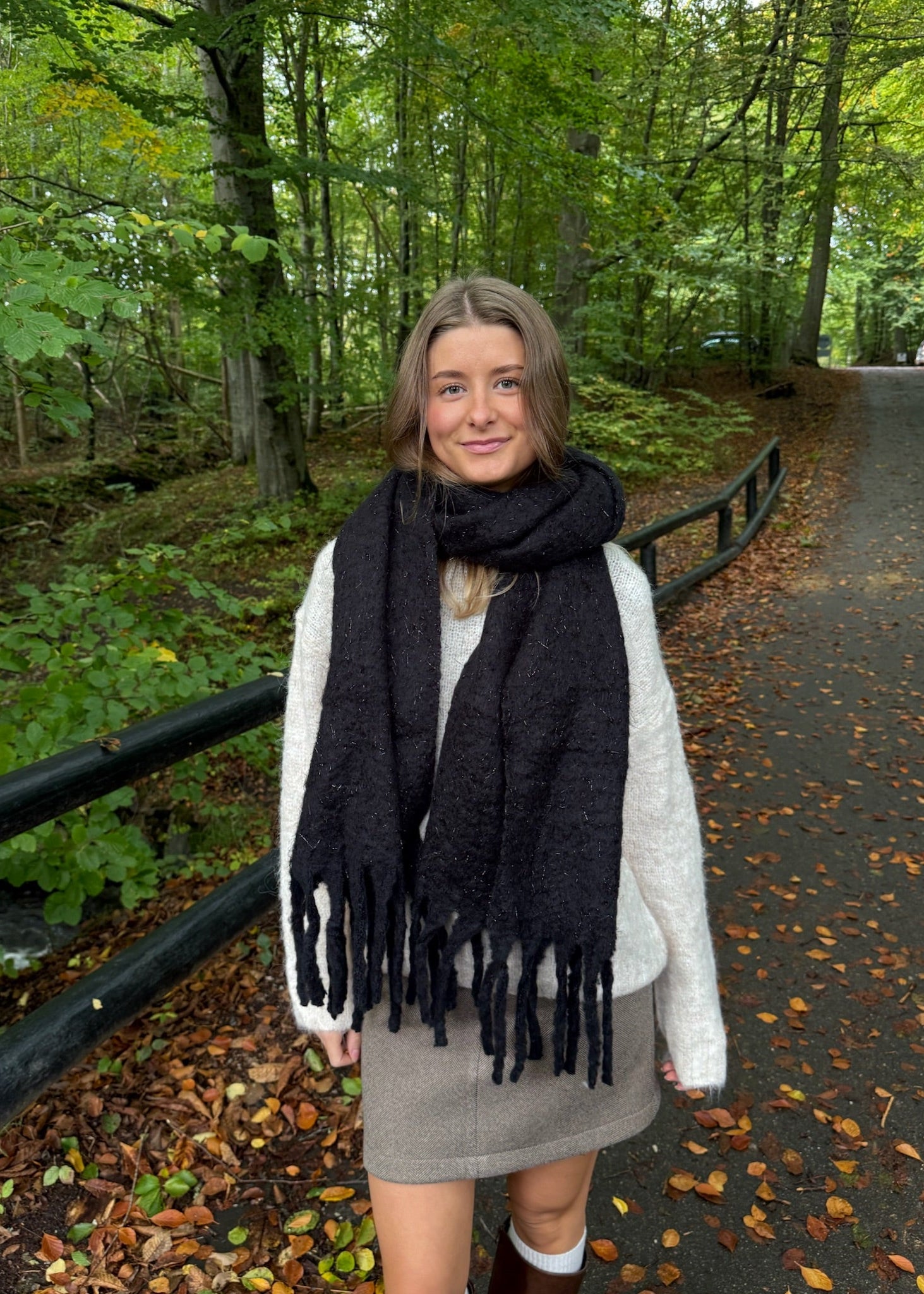 Vores nye Chunky Tørklæde er et blødt og stort tørklæde med frynser og glitter detalje, der giver et flot og hyggeligt udtryk. Den chunky kvalitet gør det perfekt til de kolde dage, hvor du ønsker både varme, komfort og stil 🧣✨