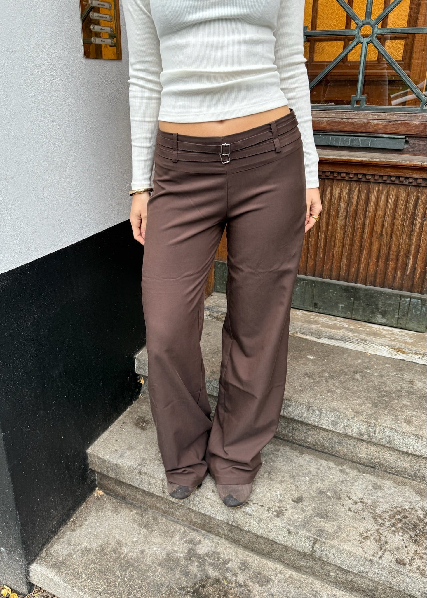 Vores Nye Elira Low Waist Bukser er det perfekte valg, hvis du er til et stilrent og moderne udtryk. De er lavet i et blødt og lækkert stof, der føles behageligt mod huden og giver et flot fald. Bukserne har lav talje, lige ben og en elegant bælte- og spænde-detalje, som giver et eksklusivt twist.✨