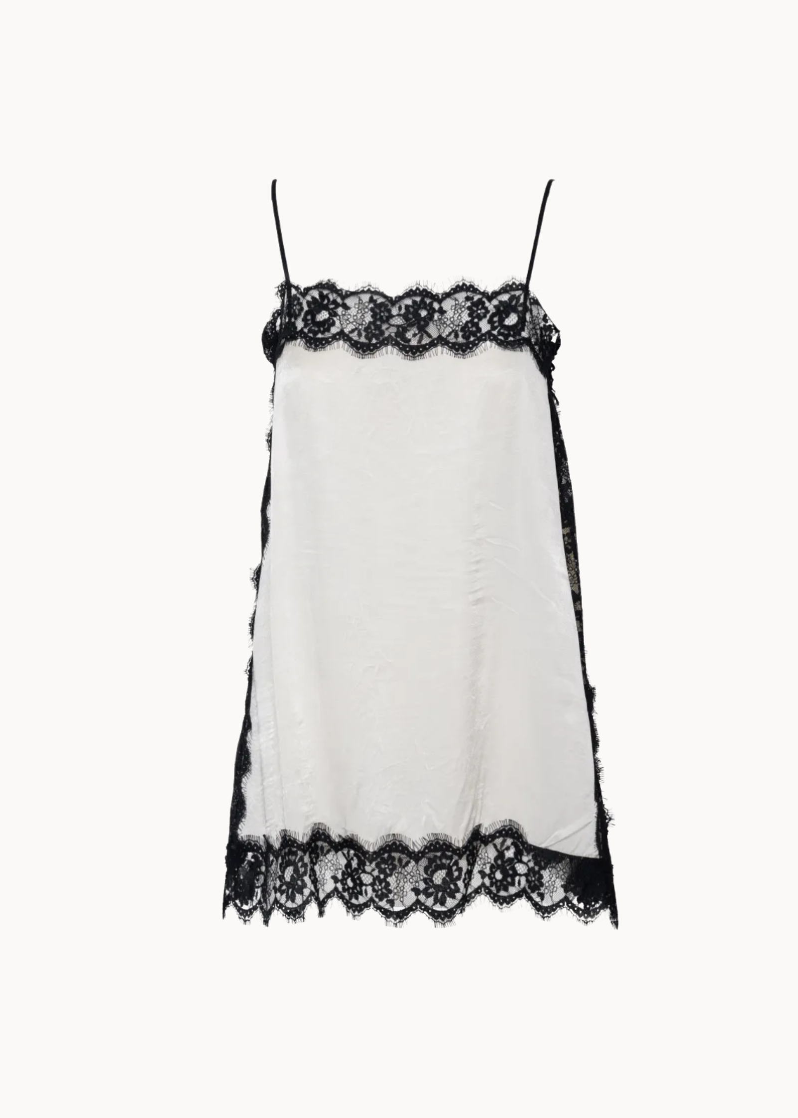 Vores Firkantet Satin Top er den perfekte kombination af elegance og femininitet. Den er designet i et glat satin-lignende materiale med delikate sorte blondekanter, der skaber et eksklusivt og sensuelt udtryk. De tynde stropper og den løse pasform giver et let og flatterende fald på kroppen. Brug den til festlige anledninger eller style den med jeans for et chic hverdagslook✨
