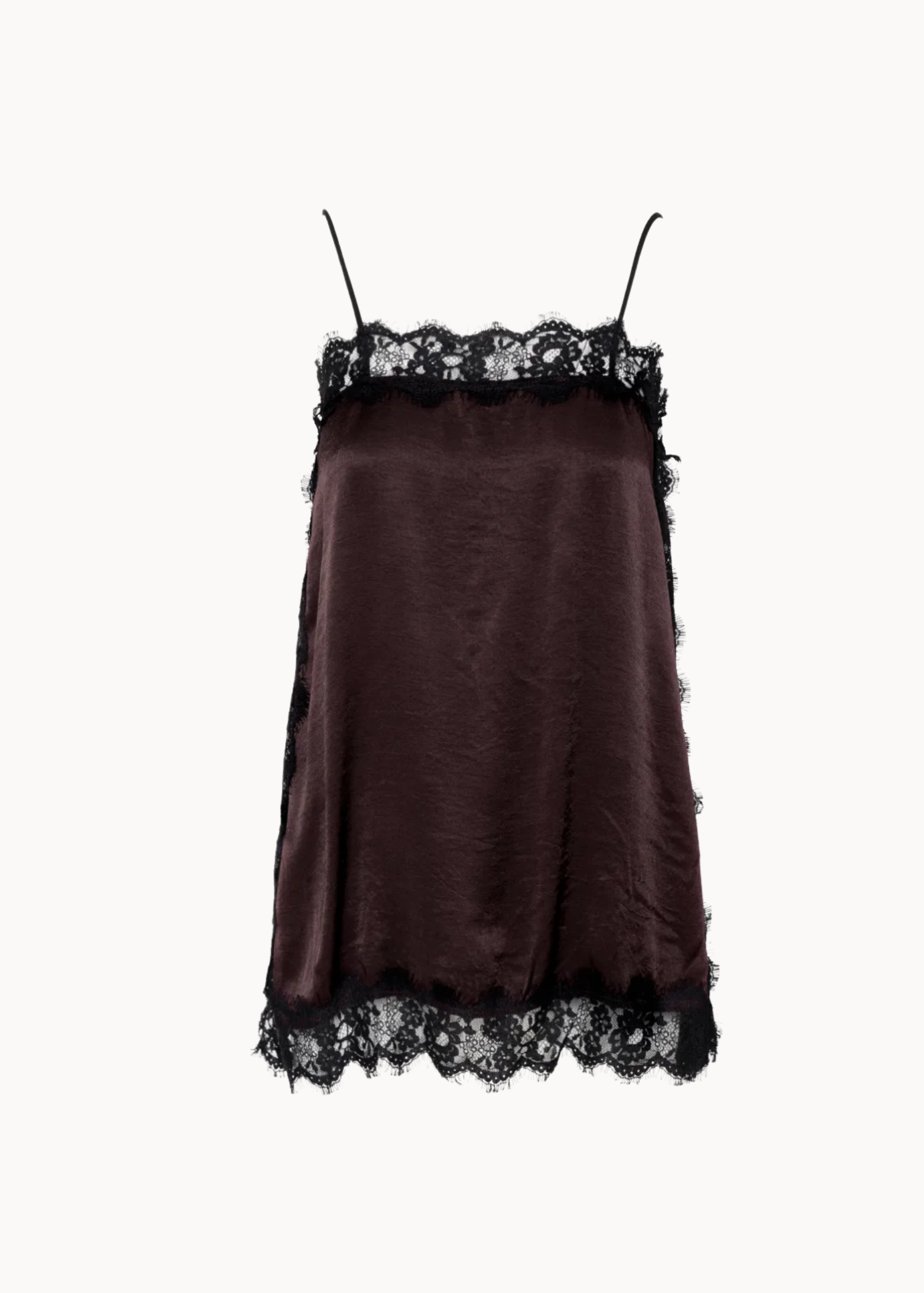 Vores Firkantet Satin Top er den perfekte kombination af elegance og femininitet. Den er designet i et glat satin-lignende materiale med delikate sorte blondekanter, der skaber et eksklusivt og sensuelt udtryk. De tynde stropper og den løse pasform giver et let og flatterende fald på kroppen. Brug den til festlige anledninger eller style den med jeans for et chic hverdagslook✨