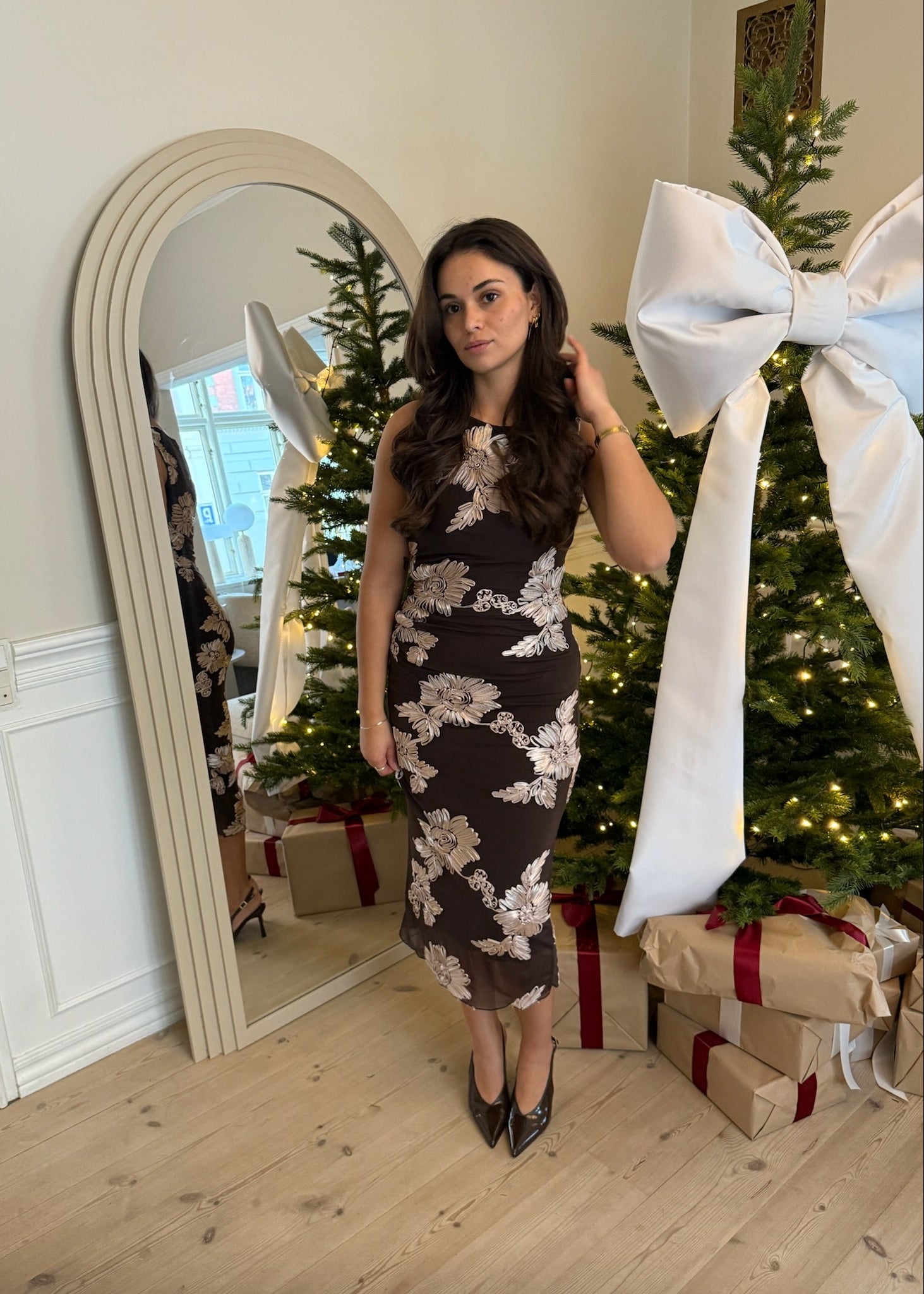 Floral Midi Kjole - Mørkebrun - ByStenholt.dk