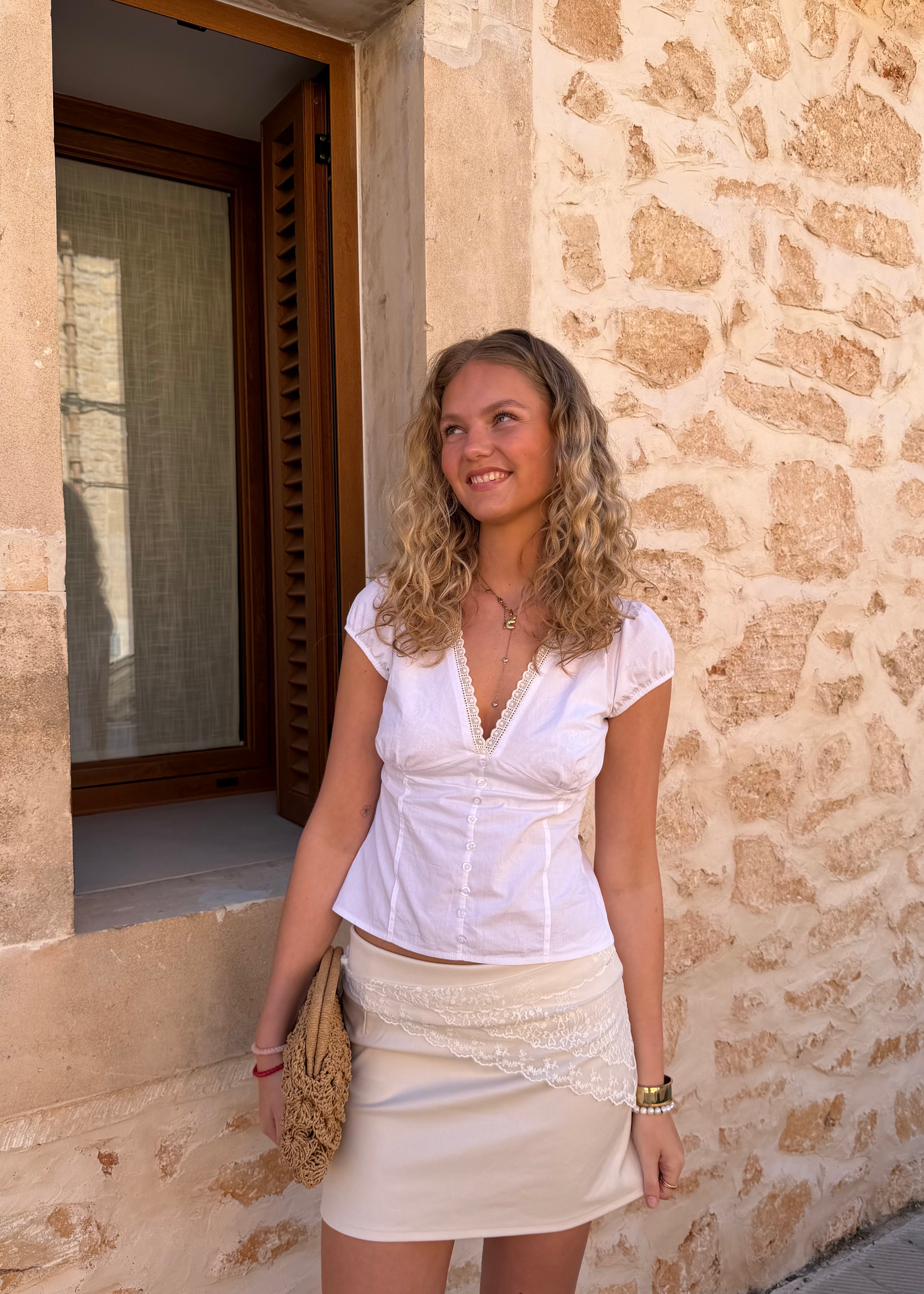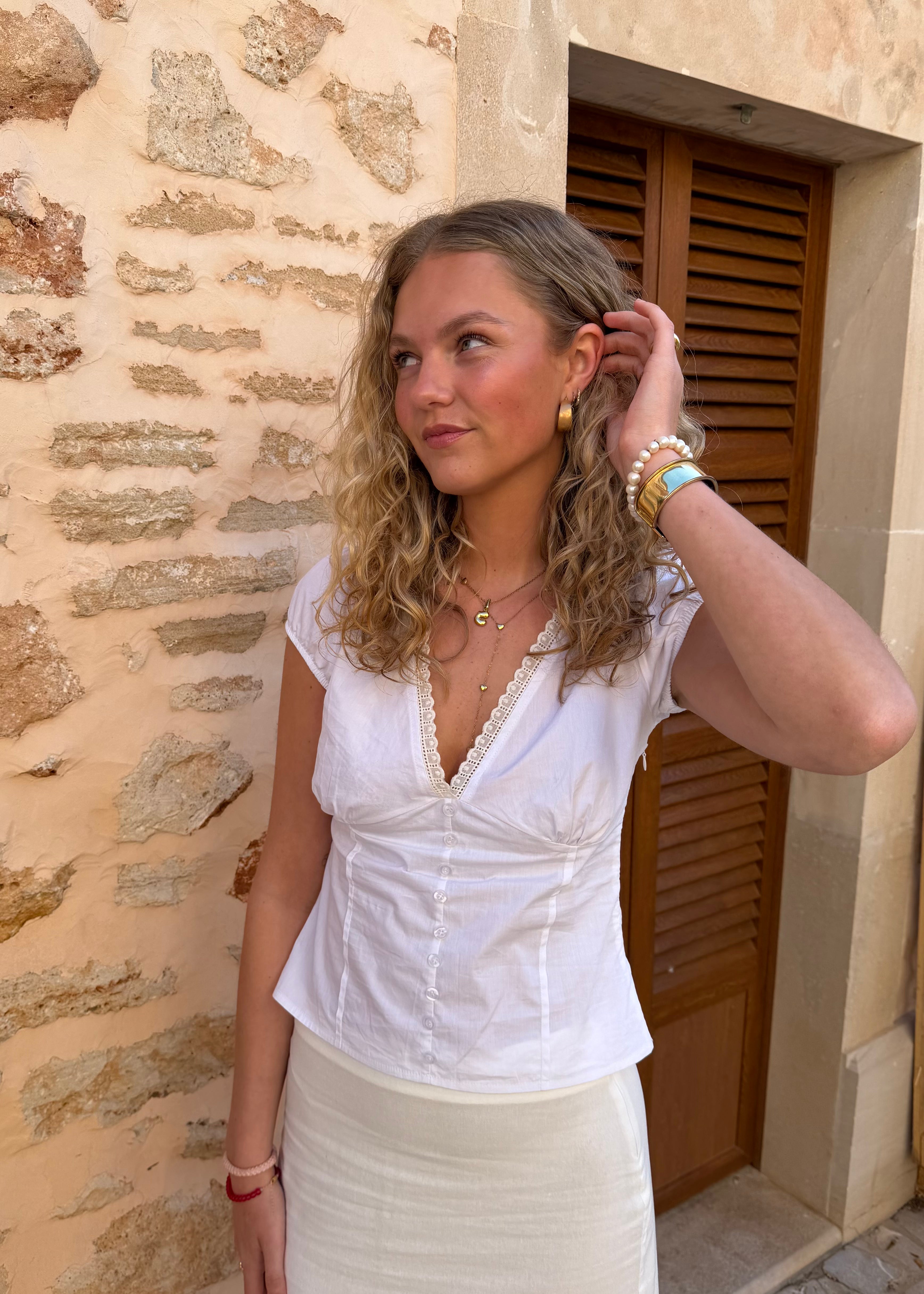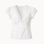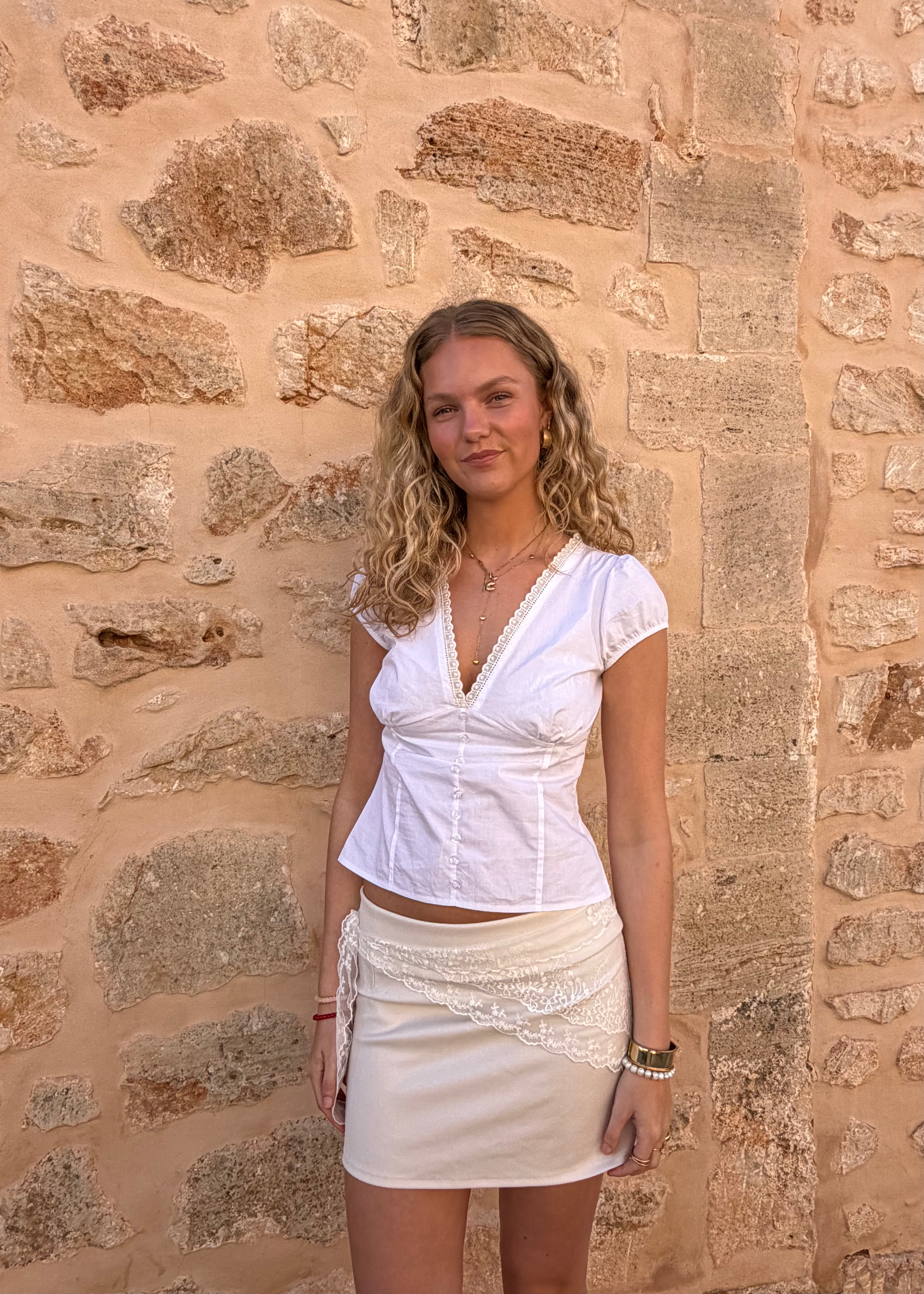 Vores Gina Kortærmet Skjorte er en let og feminin top med korte ærmer Derudover har den en dyb v-udskæring ved brystet, som giver toppen et feminint look. Toppen er lavet i et blødt og elastisk materiale, som gør toppen både behagelig og nem at style. Perfekt til varme dage - både til hverdag og sommerlige anledninger🤍