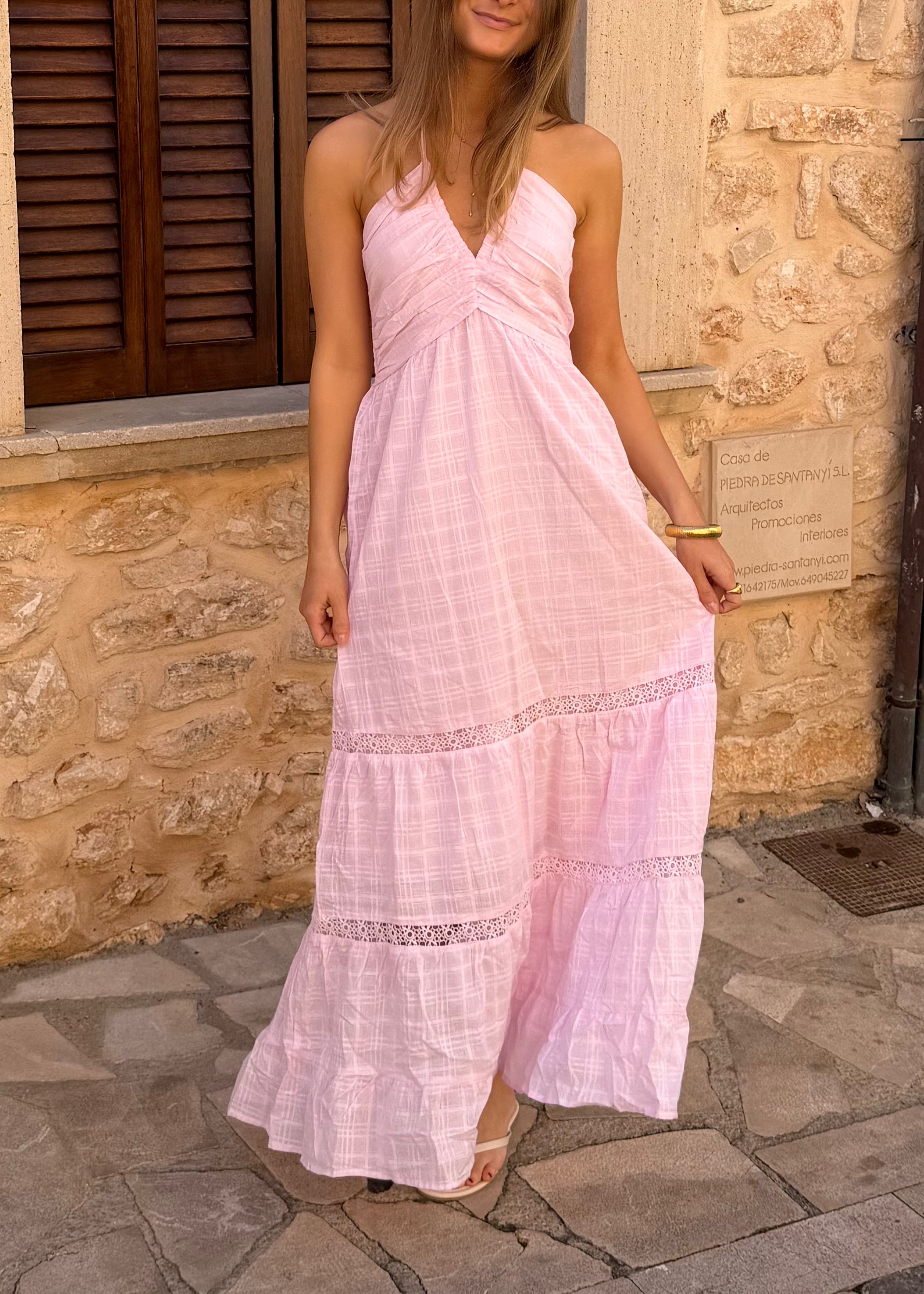 Jasmin Maxi Kjole er designet i et let og luftigt materiale, der falder smukt og naturligt. De feminine detaljer tilfører et elegant og romantisk udtryk 🤍