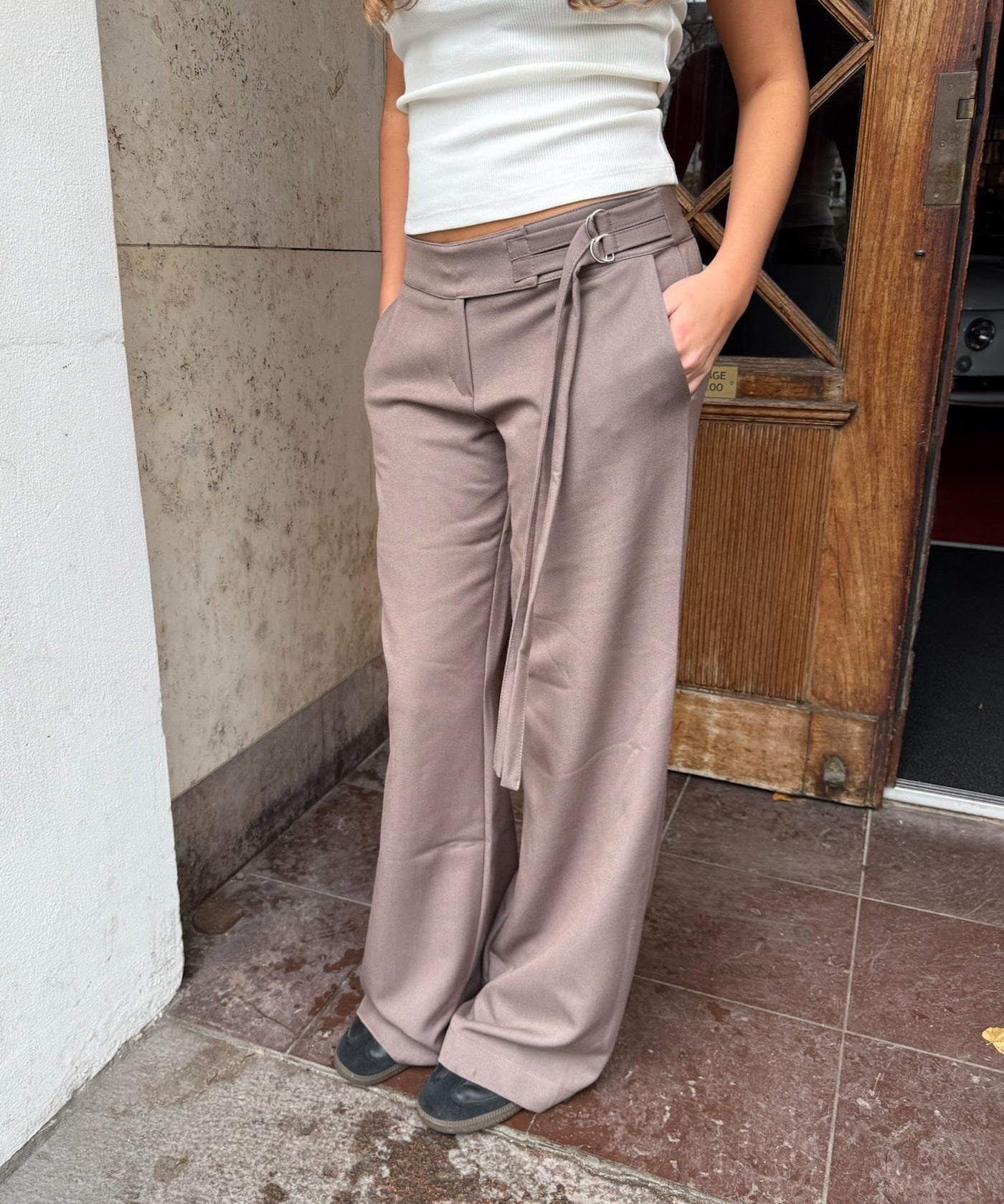 Low Waist Bukser med Spænde - Taupe - ByStenholt.dk