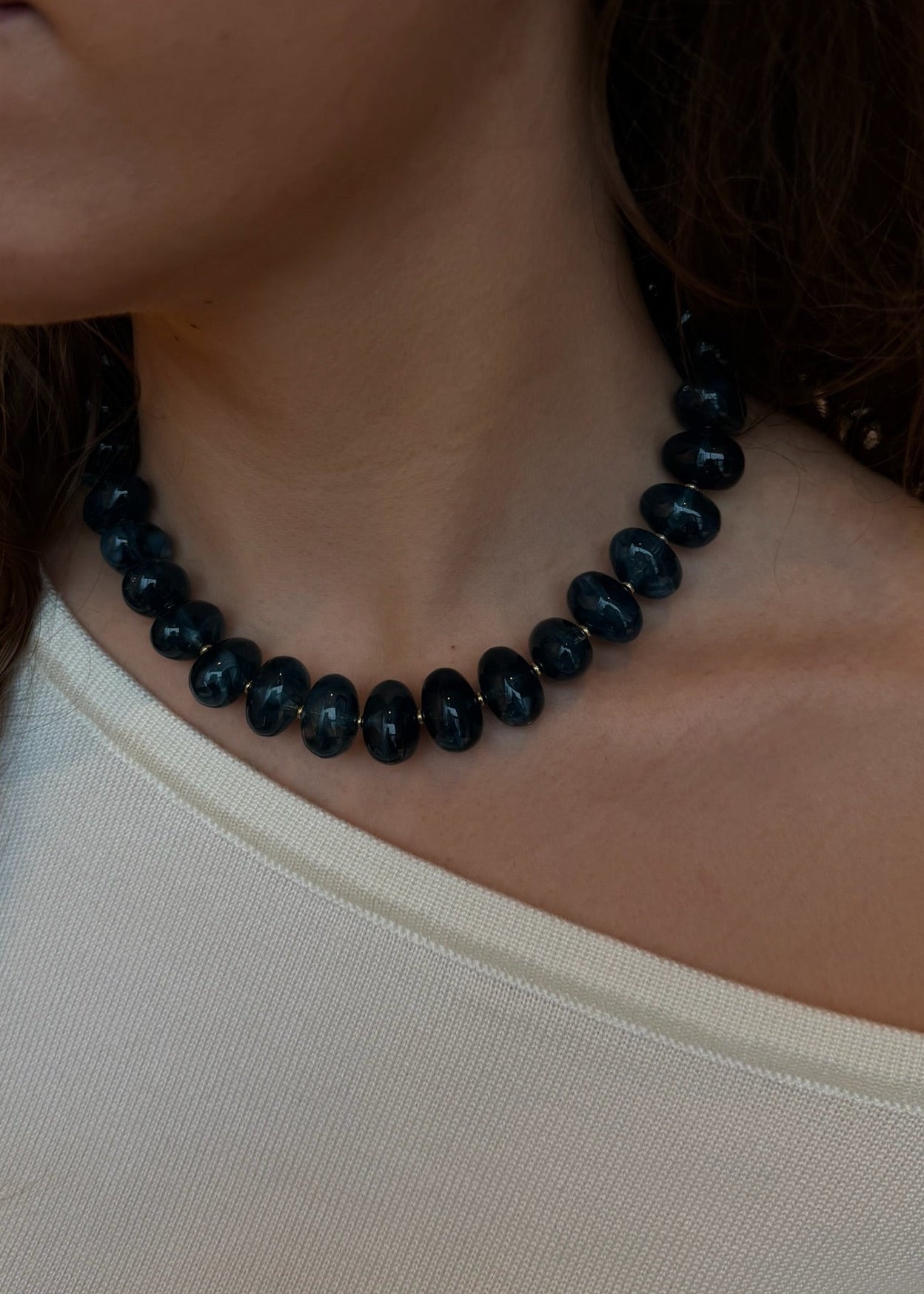 Vores Lea Halskæde er designet med store ovale perler, der giver et smukt og levende farvespil. De bløde former skaber et elegant, men markant udtryk. Perfekt som statement alene eller stylet i lag. ✨