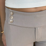 Vores Low Waist Bukser er det perfekte valg, hvis du er til et stilrent og moderne udtryk. De har en lav talje, lige ben og et bredt taljebånd med tre dekorative knapper i siden, der giver et unikt twist. Et par bukser, der nemt løfter dit outfit - uanset om du går efter et casual eller dresset look!🤍