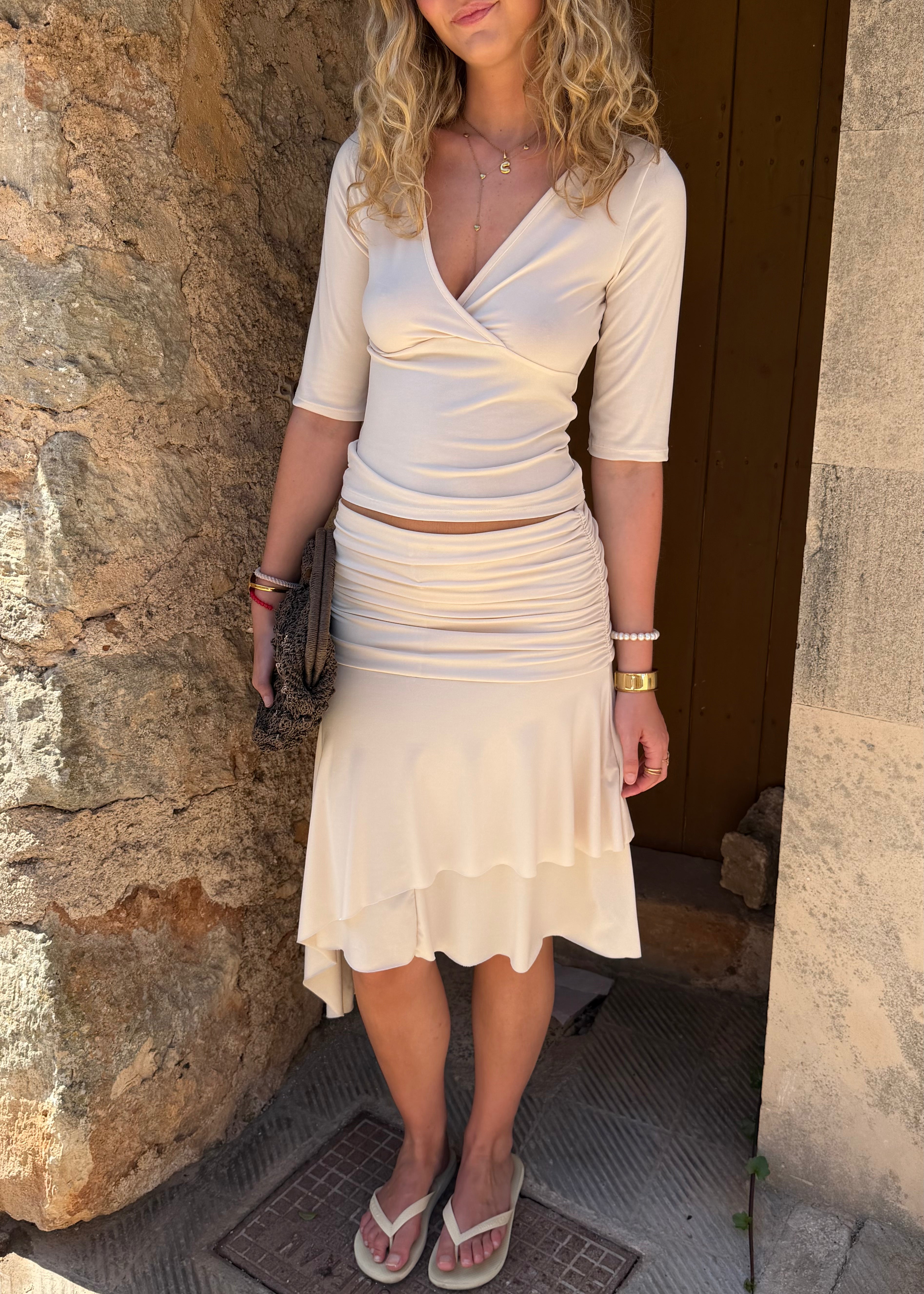 Gaia Top + Aia Nederdel Sæt - Creme - ByStenholt.dk