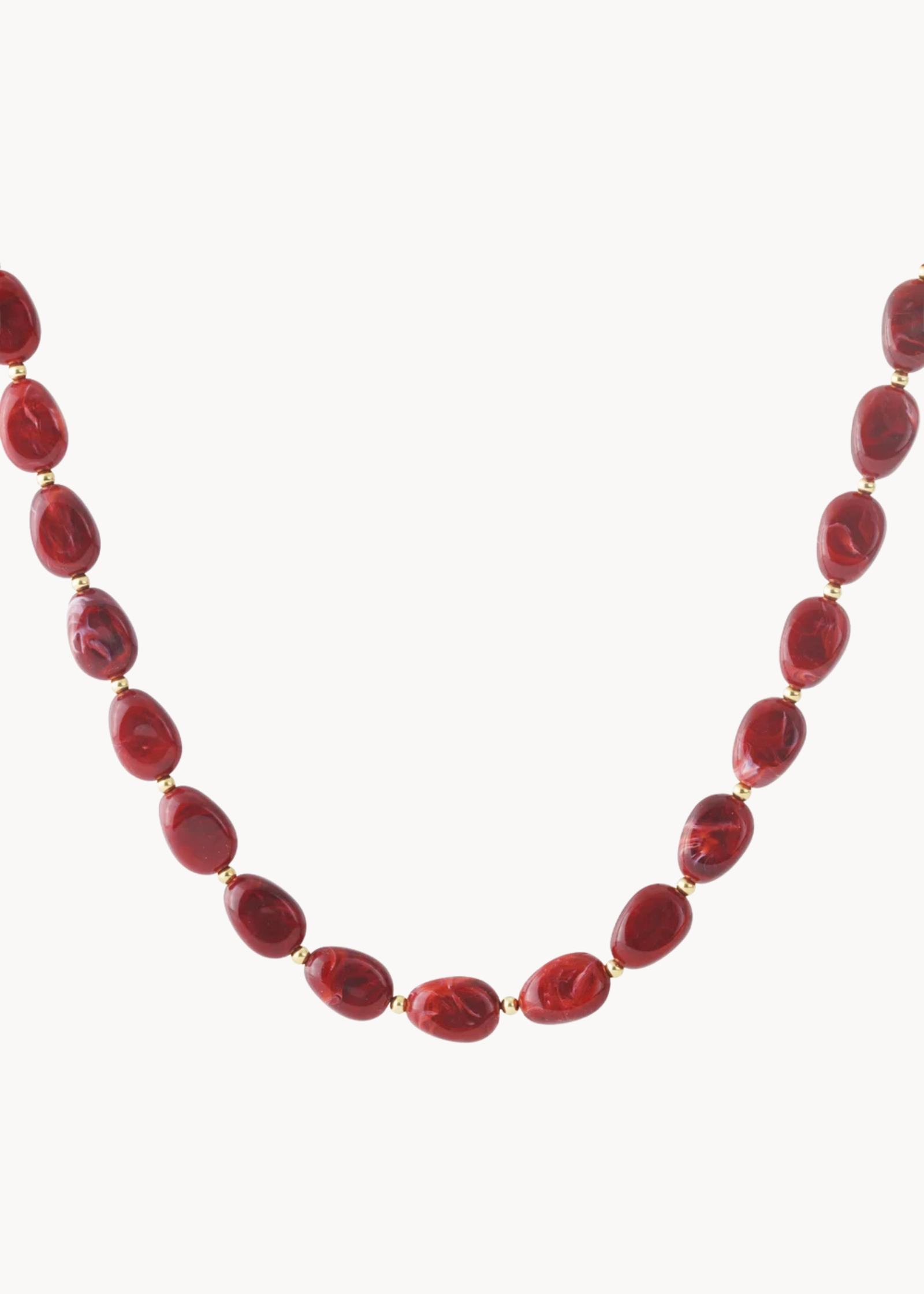 Vores Nani Chunky Perle Halskæde er en klassisk og elegant halskæde med store, glansfulde røde perler med mindre gul perler. Halskæden giver et tidløst, men markant udtryk, der løfter ethvert outfit - perfekt både til hverdag og fest.
