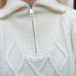 Vår fina Ofelia Half Zip Knit är en stickad tröja med halv dragkedja. Skjortan har en polokrage och ett snyggt flätmönster. Det finns även en ribbad kant vid ärmar och nederkant 💘🍂