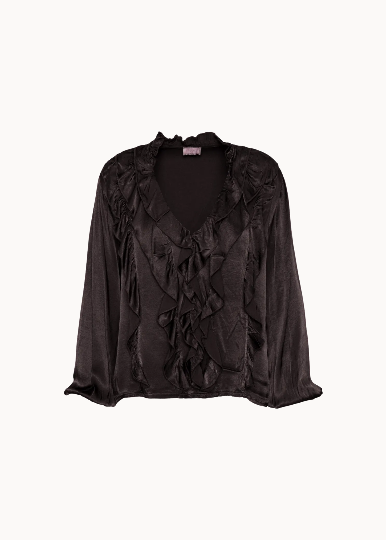 Vores Ruffle Satin Bluse er en elegant og feminin bluse, der kombinerer klassisk charme med et moderne touch. Den er designet i et glansfuldt satin-lignende materiale, der falder smukt på kroppen. De fine flæsedetaljer foran og ved udskæringen giver et romantisk og eksklusivt udtryk, mens de lange, let løse ærmer tilfører et sofistikeret look. Perfekt til både festlige anledninger og hverdage, hvor du vil tilføje lidt ekstra elegance✨
